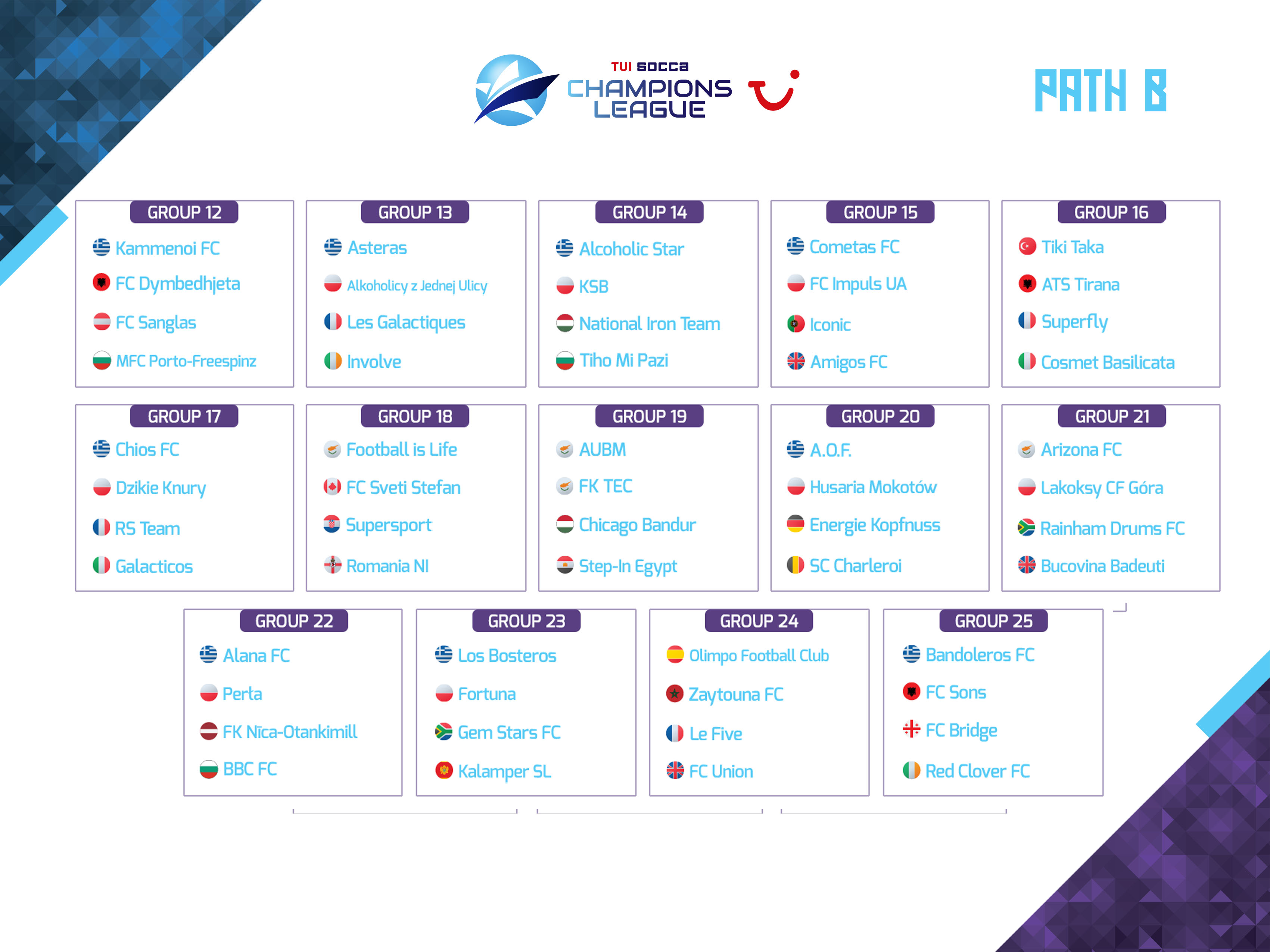 Από τις 20 ελληνικές ομάδες, πέντε έχουν συμπεριληφθεί στο μονοπάτι «Champions» εννέα σε εκείνο των «Contracts» και έξι σε αυτό της «Conference», ενώ συν τοις άλλοις θα λάβει μέρος και η La Bombonera από την Κύπρο.