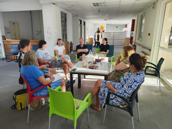 Οι επισκέψεις μας είχαν ολοκληρωθεί με τη συνάντησή μας στο κτίριο της Κοινωνικής Μέριμνας του Δήμου Ρεθύμνου, στον Μασταμπά. Τη συνάντηση είχε συντονίσει η Στεφανία Μπαχλιτζανάκη, Προϊσταμένη Τμήματος Προσχολικής Αγωγής. Παρόντα ήταν επίσης στελέχη από τους παιδικούς σταθμούς (ψυχολόγος, βοηθός νηπιαγωγού και βοηθός βρεφονηπιοκόμου), καθώς και από τον βρεφονηπιακό σταθμό και τον βρεφονηπιακό σταθμό ΑμεΑ. Η συζήτηση είχε εστιάσει κυρίως στη λειτουργία και εξυπηρέτηση των παιδιών από τη βρεφική ηλικία έως και 6 ετών. Επιπλέον, αναφερθήκαμε στην προσπάθεια που γίνεται για τη λειτουργία του βρεφονηπιακού σταθμού ΑμεΑ και, γενικότερα, στις πολιτικές υποστήριξης και ενδυνάμωσης των οικογενειών παιδιών με αναπηρία, καθώς και στα πολύ σημαντικά προγράμματα που υλοποιούνται στον χώρο. Ενδεικτικά, το τμήμα συμπερίληψης και το τμήμα ενσυναίσθησης και συμπερίληψης μεταξύ του τμήματος παιδιών ΑμεΑ και παιδιών τυπικής ανάπτυξης των παιδικών σταθμών. Η αρτιότητα των συνομιλητών μας και οι πολιτικές ενίσχυσης και συμπερίληψης είχαν ενθουσιάσει τους εταίρους μας στο πρόγραμμα.