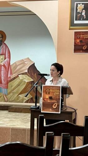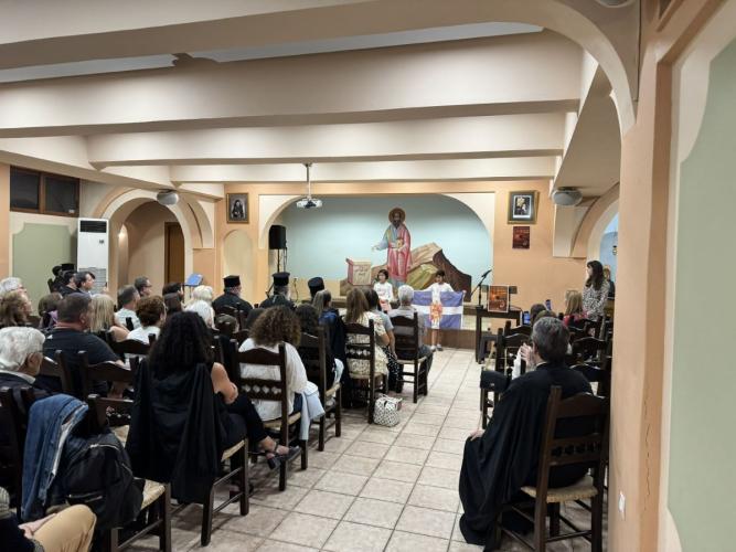 Χαιρετισμό απηύθυνε ο Πανοσιολ. Αρχιμ. Παρθένιος Καλυβιανάκης, Πρωτοσύγκελλος της Ιεράς Μητροπόλεως Ρεθύμνης και Αυλοποτάμου και πνευματικός πατέρας της συγγραφέως, η οποία έκαμε κατάθεση ψυχής, μιλώντας με συγκίνηση για το συγγραφικό έργο της και την έμπνευσή του σε διάφορες δύσκολες συνθήκες και περιστάσεις της ζωής.