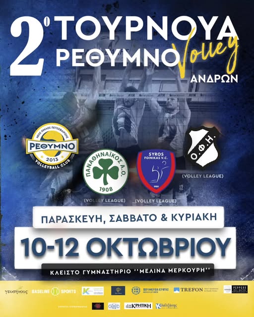 Από εχθές, Παρασκευή (10/10) έως και αύριο, Κυριακή (12/10), η καρδιά του ελληνικού βόλει “χτυπά”, στην πόλη μας, καθώς, λαμβάνει χώρα το 2ο Ρέθυμνο Volleyball Tournament Ανδρών (10 – 12/10) με την συμμετοχή κορυφαίων ομάδων, της Volley League (Α΄ Εθνική Κατηγορία πετοσφαίρισης), αλλά, και του Ν.Ο.ΠΕ. Ρεθύθμνου.