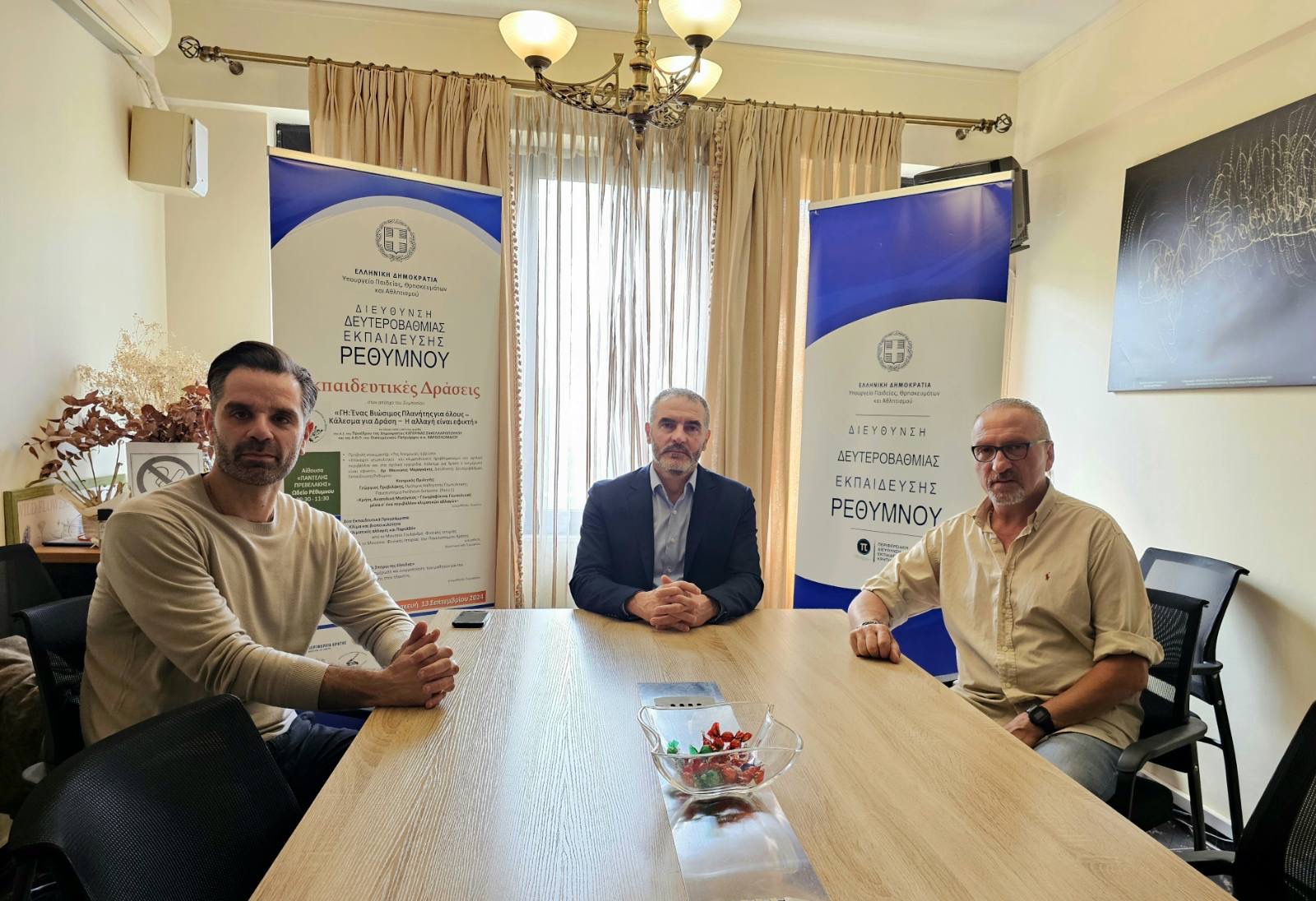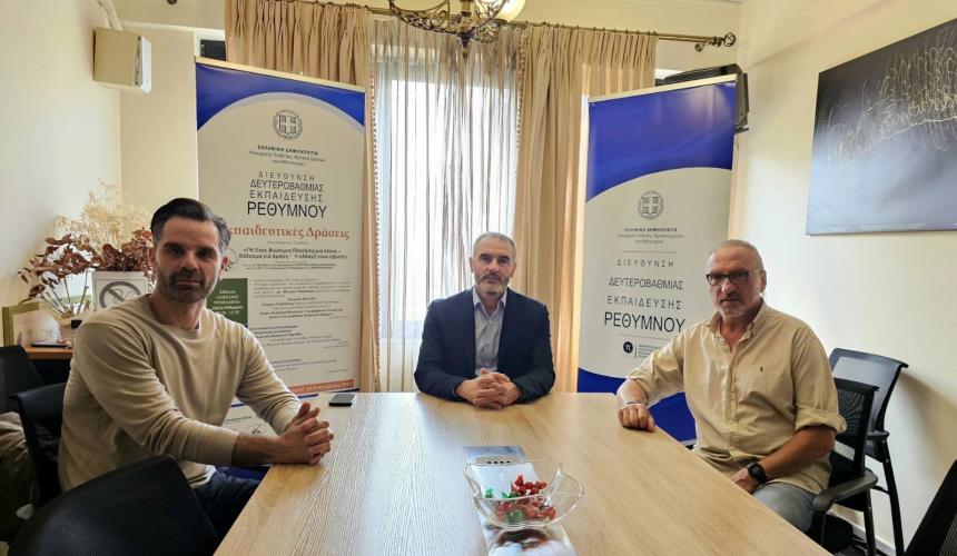 Επίσκεψη στα γραφεία της Πρωτοβάθμιας και Δευτεροβάθμιας Εκπαίδευσης του νομού Ρεθύμνου πραγματοποίησε ο Βουλευτής Ρεθύμνης του ΠΑΣΟΚ – Κινήματος Αλλαγής, Μανόλης Χνάρης, συνοδευόμενος από τον γραμματέα της Ν.Ε. ΠΑΣΟΚ, Ανδρέα Αντωνίου, προκειμένου να ενημερωθεί διεξοδικά για την πορεία της φετινής σχολικής χρονιάς, τις υποδομές, καθώς και για τα ζητήματα που απασχολούν μαθητές και εκπαιδευτικούς.