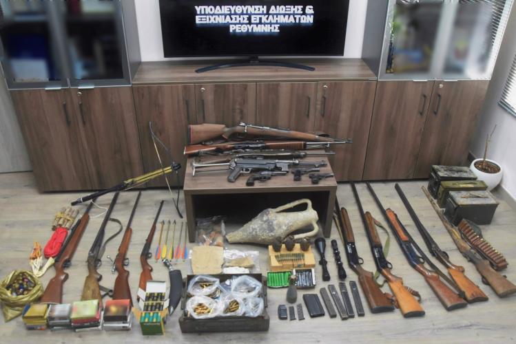 Ειδικότερα, στο πλαίσιο στοχευμένων ενεργειών και ειδικών δράσεων, που εκπονεί η Διεύθυνση Αστυνομίας Ρεθύμνης για την καταπολέμηση της παράνομης οπλοκατοχής και κατόπιν αξιοποίησης πληροφοριών που περιήλθαν στην ανωτέρω Υπηρεσία, χθες 16.10.2025 το πρωί πραγματοποιήθηκε συντονισμένη αστυνομική επιχείρηση κατά την διάρκεια της οποίας πραγματοποιήθηκαν έρευνες στην οικία του ημεδαπού και σε διάφορους χώρους που χρησιμοποιεί.
