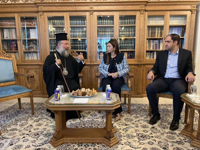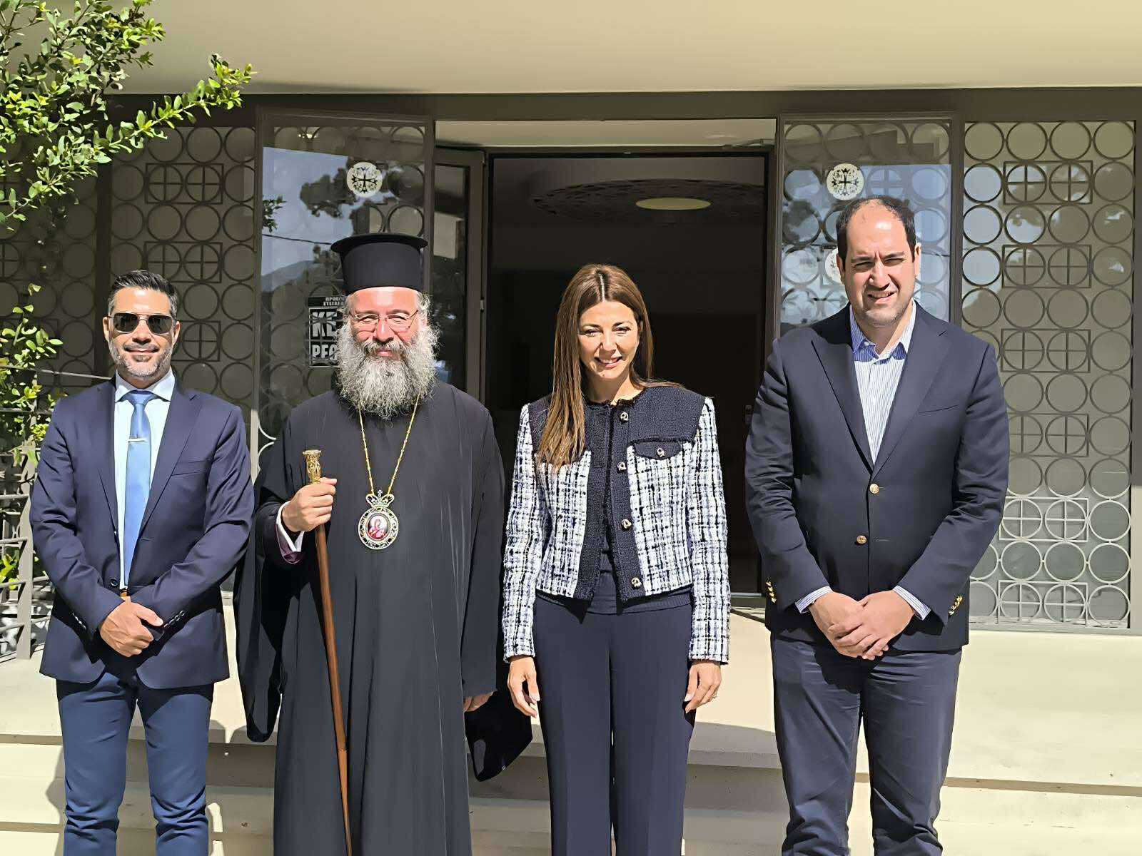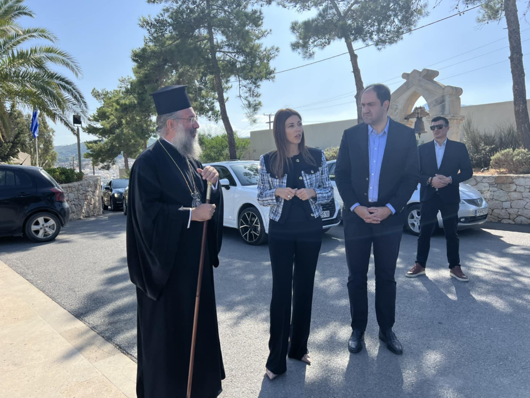 Μετά τις επισκέψεις της Υπουργού Παιδείας Σοφίας Ζαχαράκη στο Ειδικό Σχολείο στα Μισίρια και στο 16ο Δημοτικό Σχολείου Ρεθύμνου, ακολούθησε η συνάντηση της με τον Μητροπολίτη Ρεθύμνης και Αυλοποτάμου Πρόδρομο. Η κα Ζαχαράκη έφτασε στον λόφο του Τιμίου Σταυρού και συγκεκριμένα στο Κέντρο Πολιτισμικής και Κοινωνικής Διακονίας της Ιεράς Μητροπόλεως Ρεθύμνης και Αυλοποτάμου «ΘΕΟΜΗΤΩΡ» συνοδευόμενη από τον Ρεθεμνιώτη Υπουργό Γιάννη Κεφαλογιάννη
