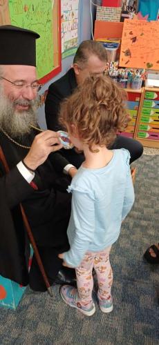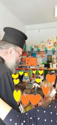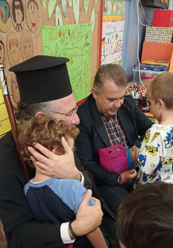 Ο Σεβασμιώτατος με τον κ. Αντιδήμαρχο είχαν, για περισσότερο από μία ώρα, συζήτηση με τις μαθήτριες και τους μαθητές, διένειμαν δώρα και έλαβαν με χαρά τα δώρα και τις χειροτεχνίες των μικρών παιδιών.