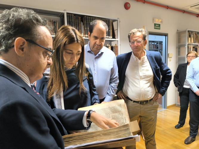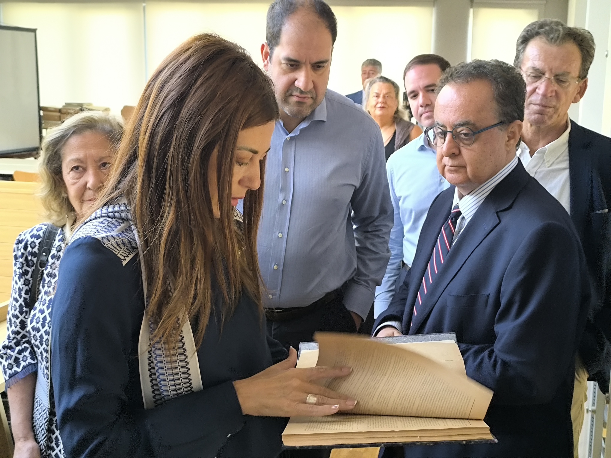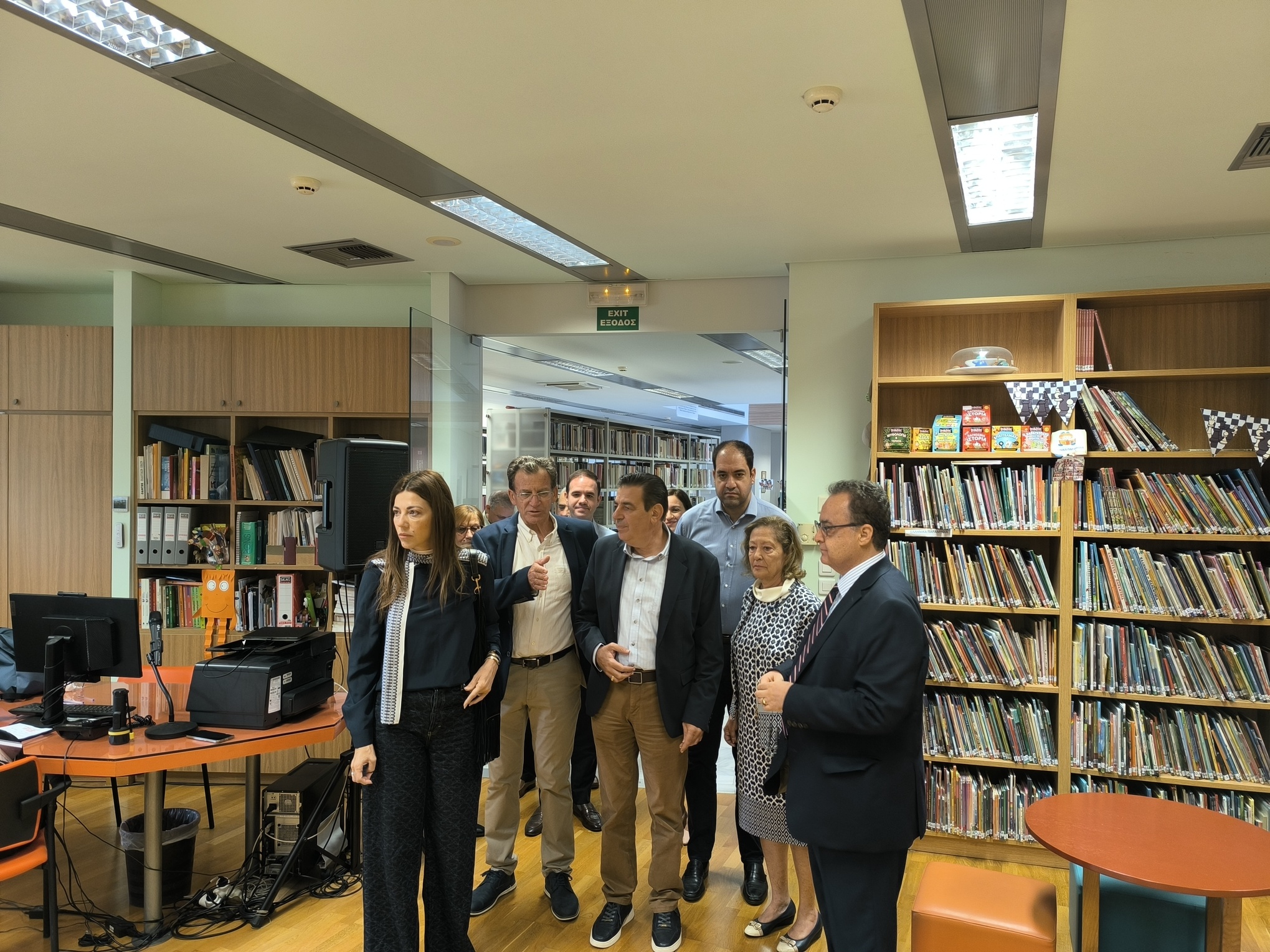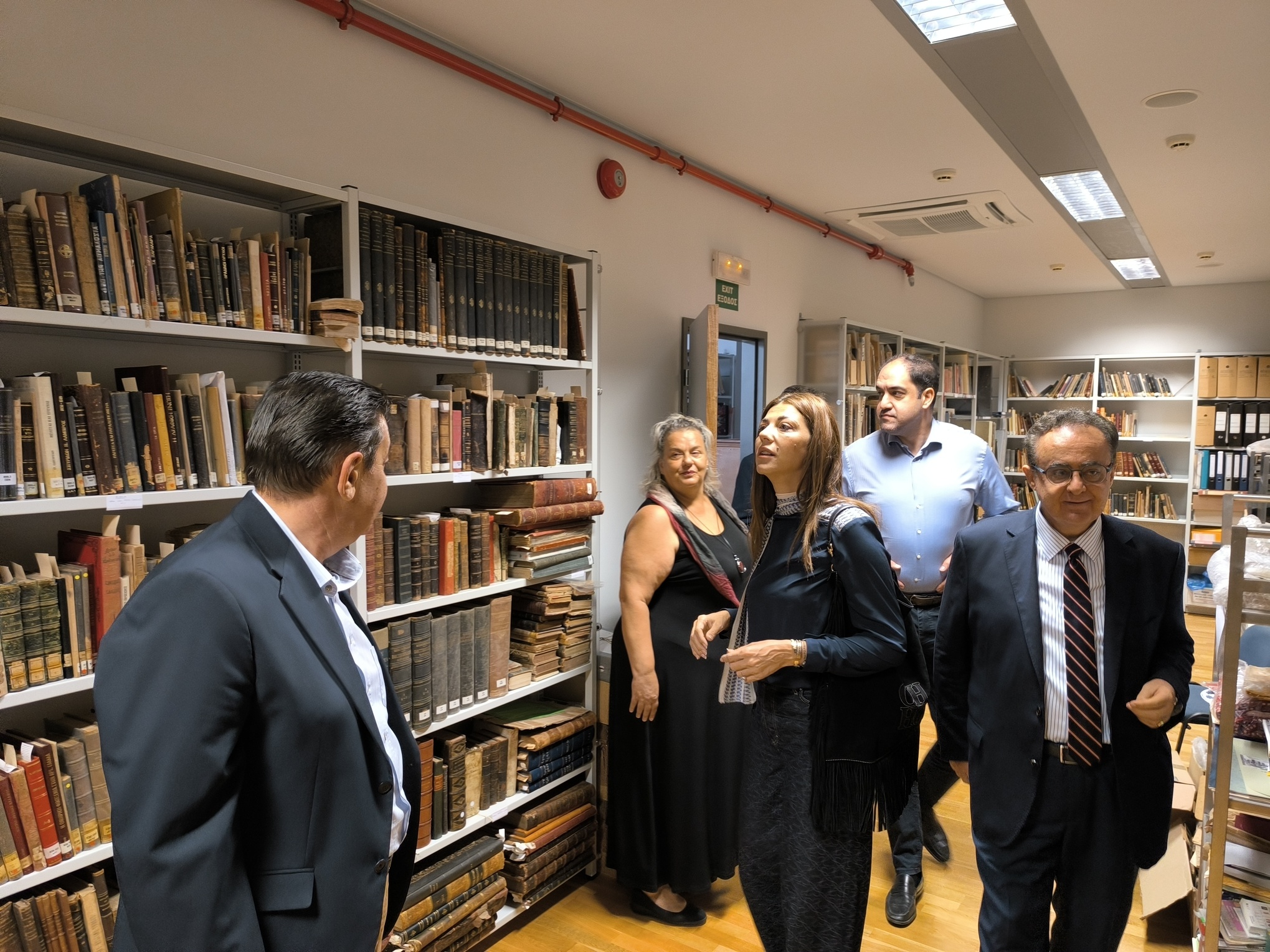 Κατά την ξενάγηση στους χώρους, η Υπουργός είχε την ευκαιρία να ενημερωθεί για το σπάνιο και πλούσιο έντυπο υλικό που διαθέτει η Βιβλιοθήκη, καθώς και για τον κομβικό ρόλο της ως πυρήνα γνώσης και πολιτισμού για την τοπική κοινωνία.