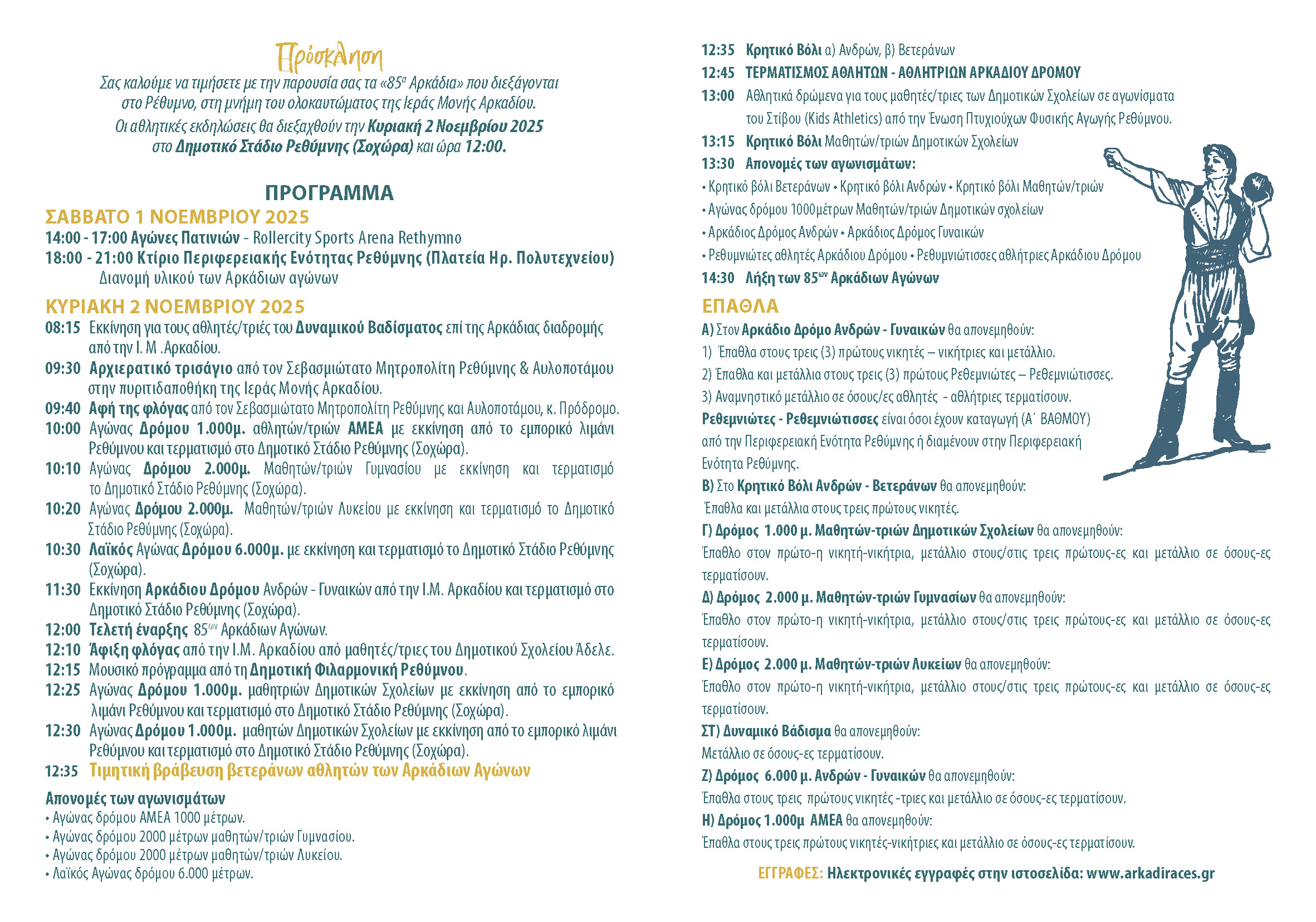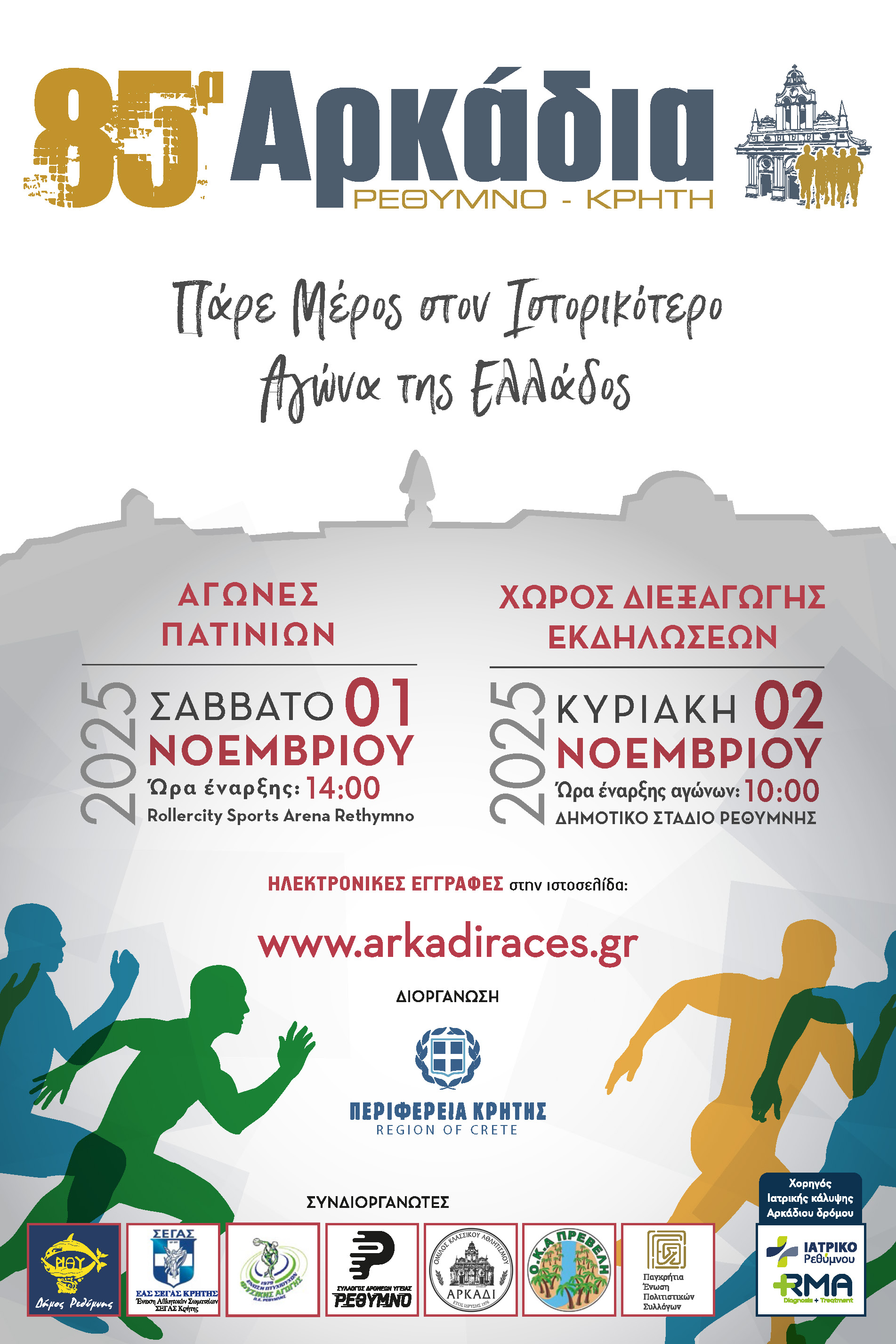 Ηλεκτρονικές εγγραφές στην ιστοσελίδα: www.arkadiraces.gr