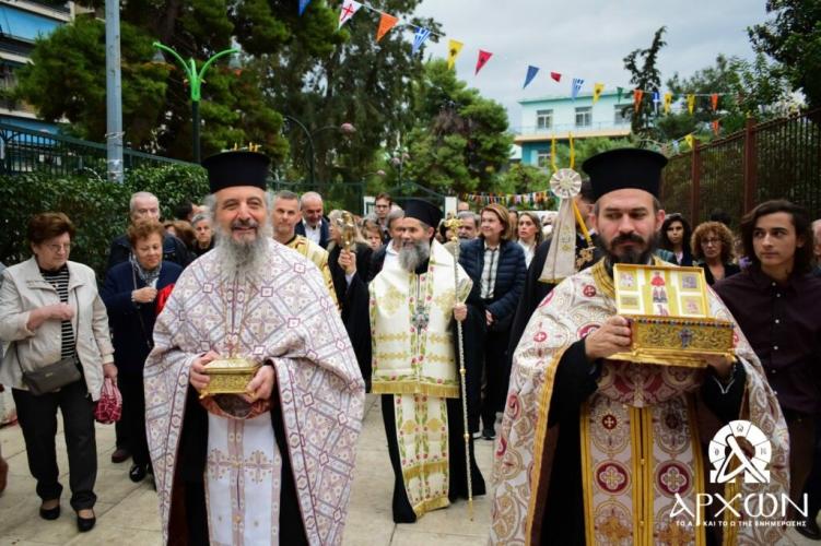 Στο Μεθέορτο Εσπερινό χοροστάτησε και ακολούθως προεξήρχε της Ιεράς Λιτανείας ο άρτι χειροτονηθείς Θεοφιλέστατος Επίσκοπος Χριστουπόλεως κ. Βαρνάβας, Πρωτοσύγκελλος της Ιεράς Αρχιεπισκοπής Αθηνών.