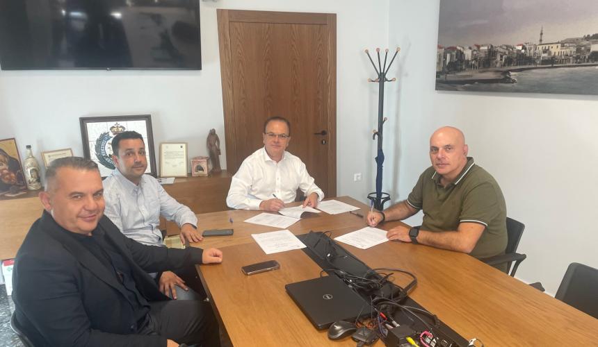 Σύμβαση που αφορά το έργο επισκευής και συντήρησης σχολικών κτιρίων υπεγράφη σήμερα το μεσημέρι στο Δημαρχείο από τον Δήμαρχο Ρεθύμνης Γιώργη Χ. Μαρινάκη και τον εκπρόσωπο της εταιρείας ΑΝΤΕΚΑ Δημήτρη Ανυφαντάκη, παρόντων του Αντιδημάρχου Τεχνικών Έργων Άγγελου Μαλά και του Αντιδημάρχου Παιδείας, Νέας Γενιάς και Δια βίου Μάθησης, Νεκτάριου Παπαδογιάννη.