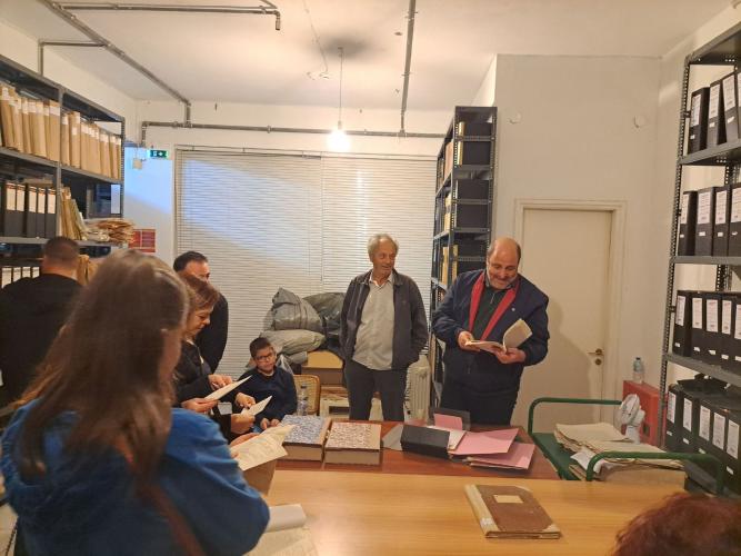 Εκεί, ενημερώθηκαν από τον κ. Αντώνιο Βερνάρδο και τον κ. Ιωάννη Κυριμάκη σχετικά με την καταγραφή, την αρχειοθέτηση και τη σκοπιμότητα της συλλογής των αρχείων. Κατά τη διάρκεια της επίσκεψης, οι μαθητές είχαν την ευκαιρία να δουν από κοντά πλούσιο αρχειακό υλικό, όπως συμβολαιογραφικά έγγραφα, μαθητολόγια, αρχεία καταγραφής ζώων και οχημάτων, εφημερίδες από παλαιότερες ιστορικές περιόδους και άλλα.