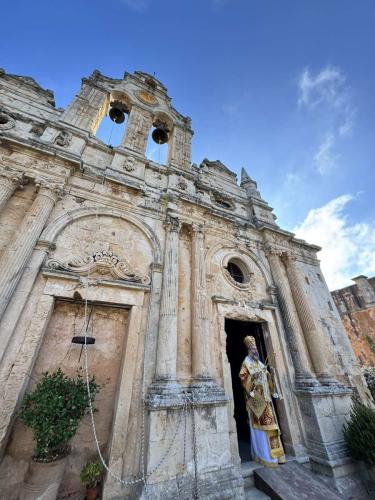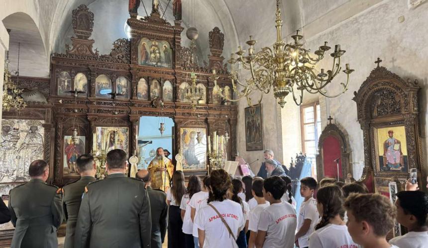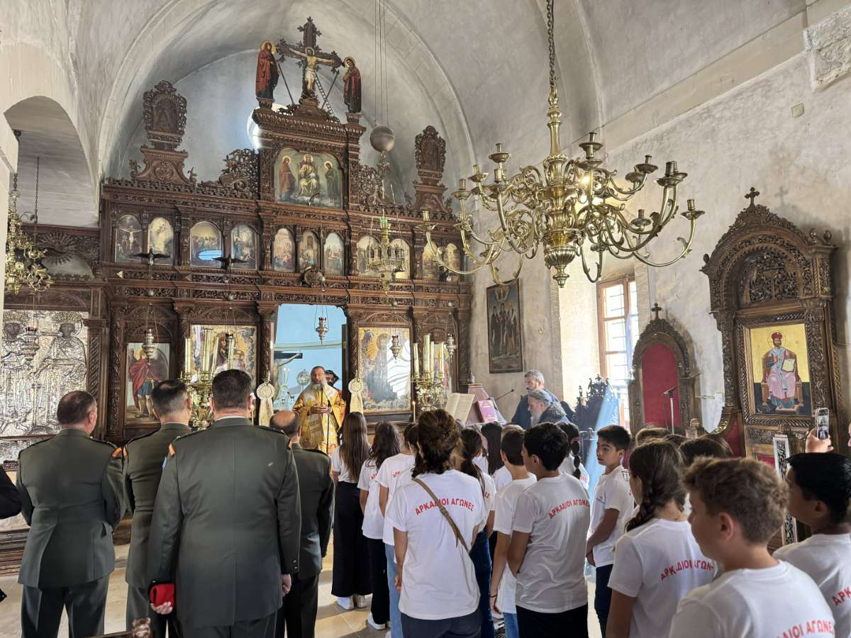 Το πρωί της Κυριακής, 2ας Νοεμβρίου 2025, ο Σεβασμιώτατος Μητροπολίτης Ρεθύμνης και Αυλοποτάμου κ. Πρόδρομος τέλεσε Αρχιερατική Θεία Λειτουργία, στο Καθολικό της Ιεράς Πατριαρχικής και Σταυροπηγιακής Μονής Αρκαδίου, με την παρουσία του Ενδοξωτάτου Ταξιάρχου Νικολάου Κωστάκη, Διοικητού της 5ης Α/Μ Ταξιαρχίας «V Μεραρχία Κρητών», του Επιτελάρχη της 5ης Α/Μ Ταξιαρχίας «V Μεραρχία Κρητών», Συνταγματάρχου Γεωργίου Τσιαντούλα, του Ανώτατου Διοικητού Φρουράς Ρεθύμνου και Διοικητού του 548 Α/Μ ΤΠ Ρεθύμνου, Αντισυνταγματάρχου Εμμανουήλ Μουρτζάκη, του Διοικητού του 547 Α/Μ ΤΠ Ρεθύμνου, Αντισυνταγματάρχου Γεωργίου Σφηναρόλη, καθώς και αντιπροσωπείας της 6ης τάξης του Δημοτικού Σχολείου Σταυρωμένου.