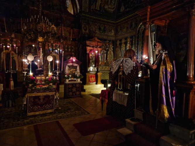 Το βράδυ της Κυριακής 2 Νοεμβρίου τελέστηκε Αρχιερατικός Εσπερινός χοροστατούντος του Σεβ. Μητροπολίτη Ρεθύμνης και Αυλοποτάμου κ. Πρόδρόμου, ο οποίος κήρυξε και τον Θείο Λόγο.