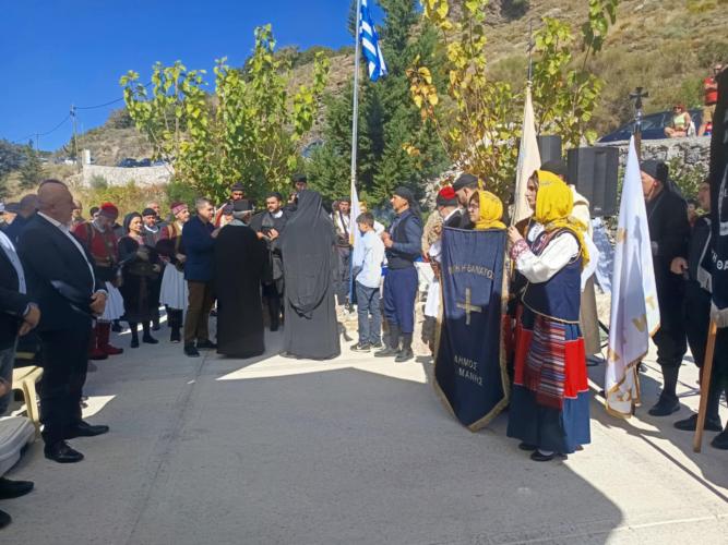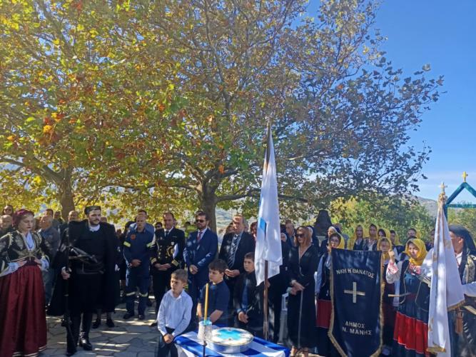 Οι εκδηλώσεις ξεκίνησαν νωρίς το πρωί με Θεία Λειτουργία και Ιερό Μνημόσυνο για τους πεσόντες. Μετά το πέρας της Θείας Λειτουργίας, ο Ηγούμενος της Ιεράς Μονής Αρχιμανδρίτης π. Βαρθολομαίος, αφού ευχαρίστησε θερμά τις Αρχές και τους παρευρισκόμενους πιστούς, εξέφρασε ιδιαίτερες ευχαριστίες προς τον Δήμαρχο Ανατολικής Μάνης κ. Πέτρο Ανδρεάκο, το Σώμα Αποδόσεως Τιμών Μάνης και ολόκληρη την πολυπληθή αποστολή τους, για την τιμητική τους παρουσία και την αγάπη που έδειξαν προς τον τόπο. Ο Ηγούμενος, με λόγο μεστό και συγκινητικό, εξήρε τον καθοριστικό ρόλο της Εκκλησίας, της οικογένειας και της φιλοπατρίας στη διαμόρφωση ανθρώπων με αξίες και ιδανικά, τονίζοντας ότι σε μια εποχή αμφισβήτησης, οι σταθερές αυτές αποτελούν τον πυρήνα της κοινωνικής και πνευματικής συνοχής. Ακολούθως, η Μονή προσέφερε καφέ και παραδοσιακό πρωινό σε όλους τους παρευρισκόμενους. Οι εκδηλώσεις συνεχίστηκαν στο Μνημείο Πεσόντων, που βρίσκεται πλησίον της Μονής, όπου τελέστηκε επιμνημόσυνη δέηση, εκφωνήθηκαν ομιλίες και παρουσιάστηκαν παραδοσιακά δρώμενα, με μουσική και χορούς από τους Συλλόγους των Μανιατών και των Κρητικών, αποτίοντας φόρο τιμής στους ήρωες και την ιστορική μνήμη.