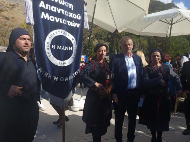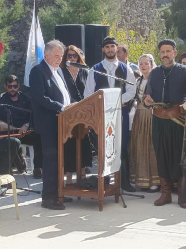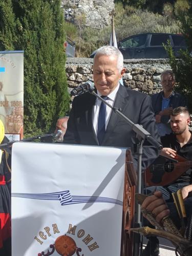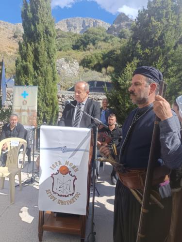 Χαιρετισμό απέστειλε και διαβάστηκε ο συντοπίτης Υπουργός Κλιματικής Κρίσης και Πολιτικής Προστασίας κ. Ιωάννης Κεφαλογιάννης ενώ ο παρευρισκόμενος ανεξάρτητος Βουλευτής Επικρατείας Ναύαρχος Ευάγγελος Αποστολάκης, Πρώην Υπουργός και Επίτιμος Αρχηγός των Ενόπλων Δυνάμεων χαιρέτισε την εκδήλωση τονίζοντας την σημασία του αγώνα και της θυσίας Κρητών και Μανιατών και τον ρόλο της Μονής.