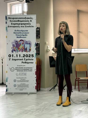 Η ημερίδα, που απευθυνόταν σε εκπαιδευτικούς Πρωτοβάθμιας και Δευτεροβάθμιας Εκπαίδευσης, έδωσε την ευκαιρία στους παρευρισκόμενους να ενημερωθούν για τις νευροαναπτυξιακές και ψυχοσυναισθηματικές διαταραχές και να συζητήσουν για το ρόλο των εκπαιδευτικών στην προαγωγή ενός περιβάλλοντος συμπερίληψης στο σχολείο.