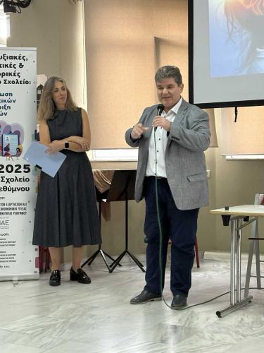 Την ημερίδα καλωσόρισε επίσης και ο Διευθυντής της Πρωτοβάθμιας Εκπαίδευσης, κ. Καρβούνης Λάμπρος, ενώ παρούσα ήταν και η κα Δαφνομήλη Σταυρούλα, Αναπληρώτρια Διευθύντρια Εκπαίδευσης Δευτεροβάθμιας Διεύθυνσης Ρεθύμνου, ως συνδιοργανωτές.