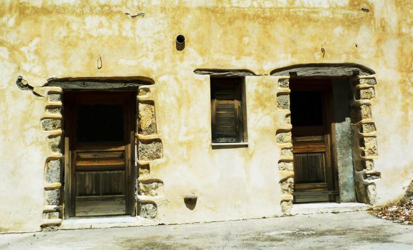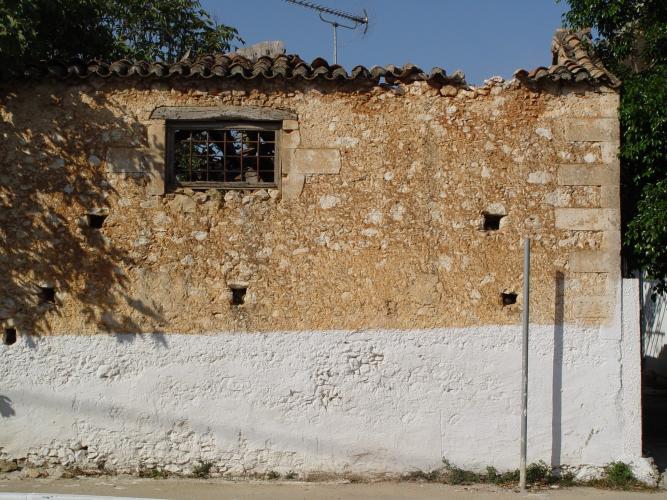 -Λίθοι: Διαχειρίσιμου μεγέθους μεταφέρονται από τον άμεσο περίγυρο πάνω σε ειδικά καβαλέτα προσαρμοσμένα στο σαμάρι του υποζυγίου. Χρησιμοποιούνται στη φυσική τους κατάσταση με ελάχιστη κατεργασία μορφοποίησης και προσαρμογής. Τα κενά μεταξύ των λίθων πληρώνονται από μικρότερους, τα «χαλίκια». Ως συνδετικό υλικό χρησιμοποιείται λάσπη από κατάλληλα επεξεργασμένο χώμα. Η δόμηση πραγματοποιείται από μαστόρους που εργάζονται κατά ζεύγη σε αντικριστή θέση μορφοποιώντας την εξωτερική και εσωτερική όψη του τοίχου. Τους τροφοδοτεί με τα απαιτούμενα υλικά βοηθός, ο «πουργός». Βασικό εργαλείο το σιδερένιο μυστρί με σημαντικό πάχος ώστε να μπορεί να χρησιμεύσει και σαν σφυρί για την μερική μορφοποίηση και ένταξη της πέτρας. Σε περισσότερο επιμελημένες κατασκευές, που ασφαλώς έχουν σχέση με την οικονομική ευχέρεια του ιδιοκτήτη, κάποια στοιχεία διαμορφώνονται με μορφοποιημένους λίθους, όπως γωνιόλιθοι και περιθώρια ανοιγμάτων που υποδέχονται και τα ξύλινα στοιχεία τους, θυρόφυλλα και παραθυρόφυλλα.