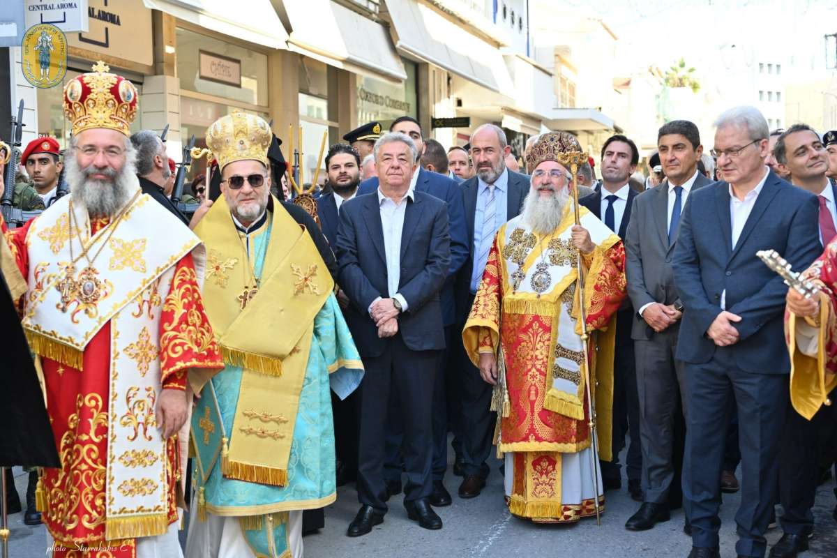 Του Ιερού Αρχιερατικού Συλλειτούργου προεξήρχε ο Σεβασμιώτατος Αρχιεπίσκοπος Κρήτης κ. Ευγένιος με τη συμμετοχή των Σεβασμιωτάτων Μητροπολιτών Διοσπόλεως κ. Εμμανουήλ εκ του Πατριαρχείου Αλεξανδρείας, Ιεραπύτνης και Σητείας κ. Κυρίλλου, Ρεθύμνης και Αυλοποτάμου κ. Προδρόμου, καθώς και του Θεοφιλεστάτου Επισκόπου Κνωσού κ. Μεθοδίου.