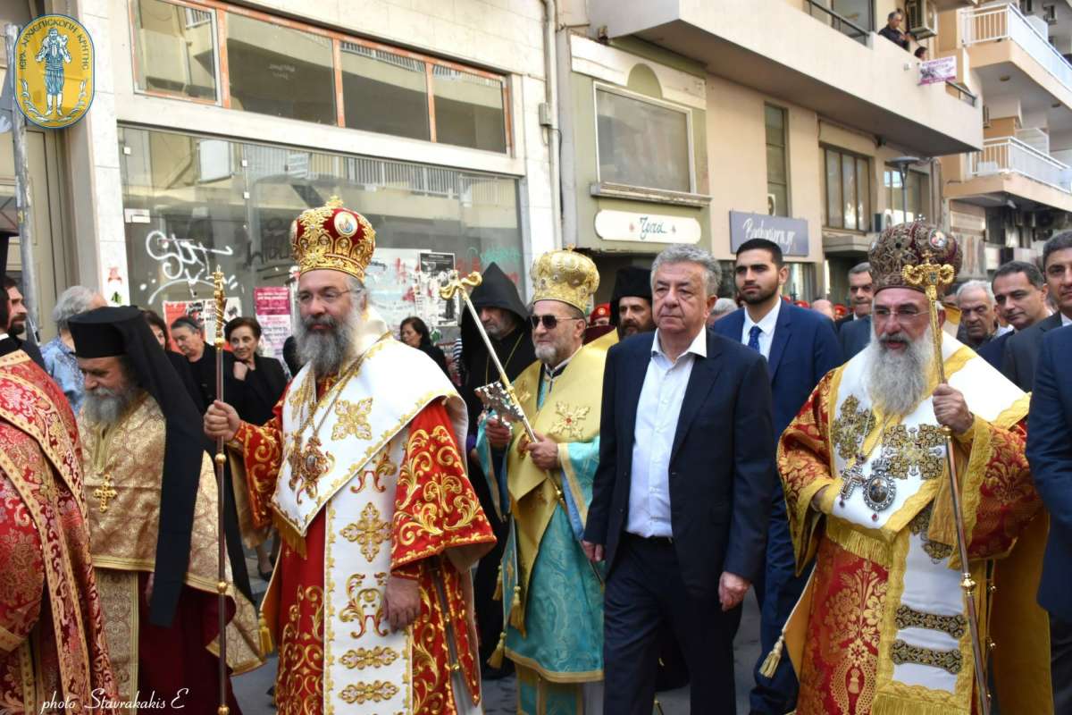 Ακολούθησε πάνδημη λιτάνευση του Ιερού Λειψάνου και της Ιεράς Εικόνος του Αγίου Μηνά στους δρόμους του Ηρακλείου, με τη συμμετοχή χιλιάδων πιστών και όλων των τοπικών αρχών και φορέων της πόλεως.