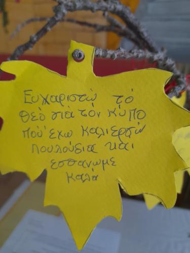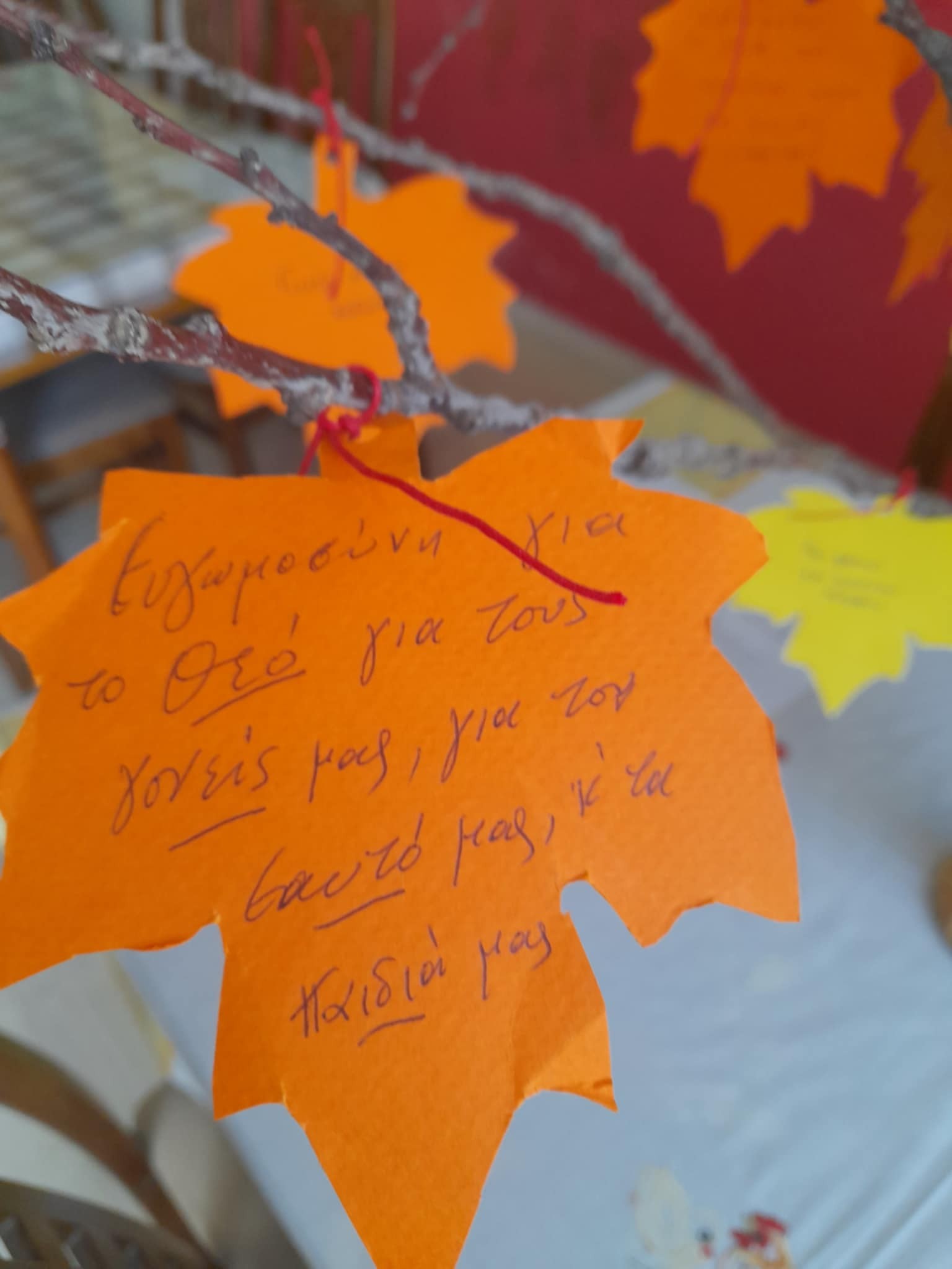 Κεντρικό στοιχείο της δράσης αποτέλεσε η δημιουργία του «Δέντρου της Ευγνωμοσύνης», όπου τα μέλη του ΚΑΠΗ κατέγραψαν προσωπικούς λόγους ευγνωμοσύνης, δημιουργώντας ένα συλλογικό έργο που αποτυπώνει μνήμη, εμπειρία και βαθιά ανθρώπινη σύνδεση.