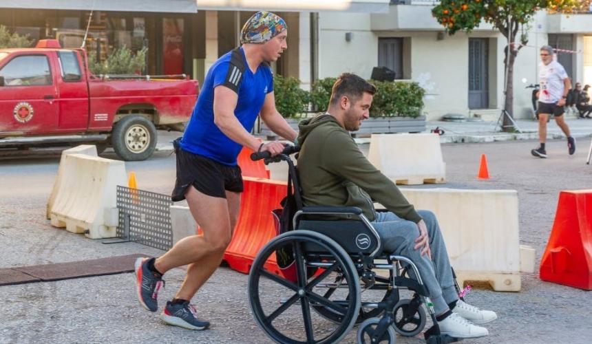 Ο Γιώργος Διαλεκτάκης, που βρίσκεται στο αμαξίδιο και ο συνοδός του, πήραν εκκίνηση στις 06:00 το πρωί και ήδη πέτυχαν ένα ακόμη παγκόσμιο ρεκόρ στα 50 χιλιόμετρα.