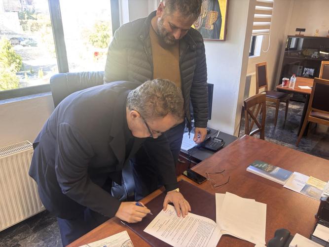 Σήμερα, στο Γραφείο του Δημάρχου Μυλοποτάμου κ. Γεωργίου Κλάδου, πραγματοποιήθηκε συνάντηση εργασίας με τον Πρόεδρο της Δημόσιας Κεντρικής Βιβλιοθήκης Ρεθύμνου και τέως Αντιπρύτανη του Πανεπιστημίου Κρήτης Καθ. Κωνσταντίνο Σπανουδάκη και το μέλος του Εφορευτικού Συμβουλίου κ. Γεώργιο Παπακωνσταντή, με σκοπό την υπογραφή του Συμφώνου Συνεργασίας μεταξύ των δύο φορέων. Η υπογραφή της συμφωνίας αποτελεί θεσμικό βήμα υψηλής σημασίας, διαμορφώνοντας ένα σταθερό πλαίσιο κοινών δράσεων, με άξονα την ενίσχυση της βιβλιοφιλίας, της εκπαίδευσης και της πολιτιστικής ανάπτυξης.