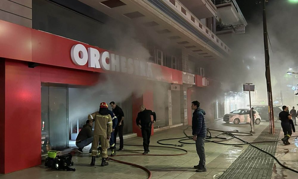 Μεγάλη πυρκαγιά ξέσπασε λίγο πριν τις 9 το βράδυ το βράδυ στα καταστήματα orchestra στην περιοχή της Καλλιθέας στο Ρέθυμνο.