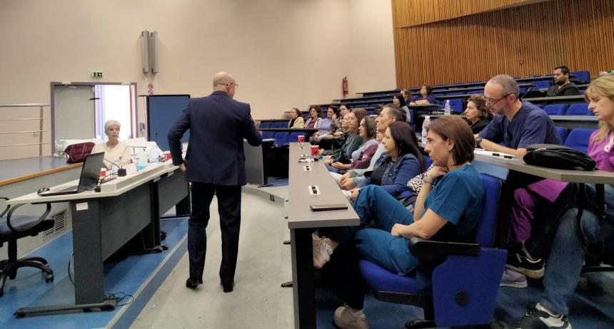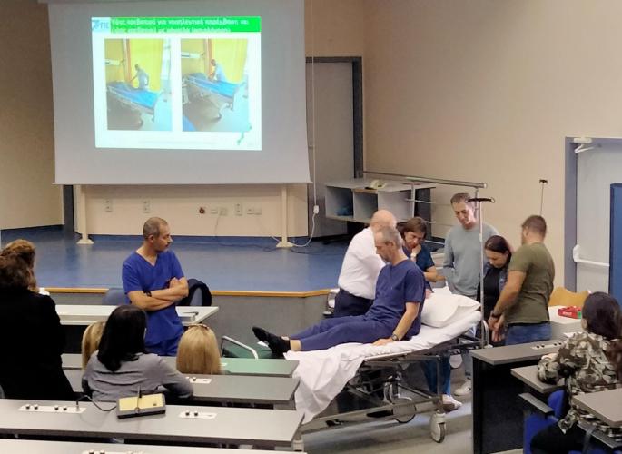 Με εισηγητή τον κ. Κώστα Τσολίγκα, Φυσικοθεραπευτή MSc, PhD cand., και πιστοποιημένο εκπαιδευτή ενηλίκων, οι συμμετέχοντες είχαν την ευκαιρία να εκπαιδευτούν σε τεχνικές εργονομικής και ασφαλούς διαχείρισης ασθενών, με στόχο την πρόληψη μυοσκελετικών κακώσεων και τη δημιουργία κουλτούρας ασφάλειας στον χώρο εργασίας.