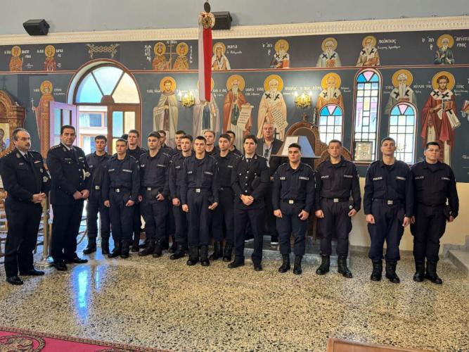 Επίσης, το πρωί του Σαββάτου, 29ης Νοεμβρίου 2025, τελέσθηκε Θεία Λειτουργία στον Ιερό Ναό Αγίας Ειρήνης, εντός του Τμήματος Δοκίμων Αστυφυλάκων Ρεθύμνου, στο τέλος της οποίας ο Σεβασμιώτατος Ποιμενάρχης κ. Πρόδρομος τέλεσε Επιμνημόσυνη Δέηση για τους κεκοιμημένους αστυνομικούς, συνεχάρη τον Πρόεδρο των συνταξιούχων αστυνομικών για την ωραία αυτή πρωτοβουλία, η οποία αποτελεί θεσμό για τον τόπο μας, και ομίλησε κατάλληλα στο εκκλησίασμα και στους σπουδαστές του Τμήματος.