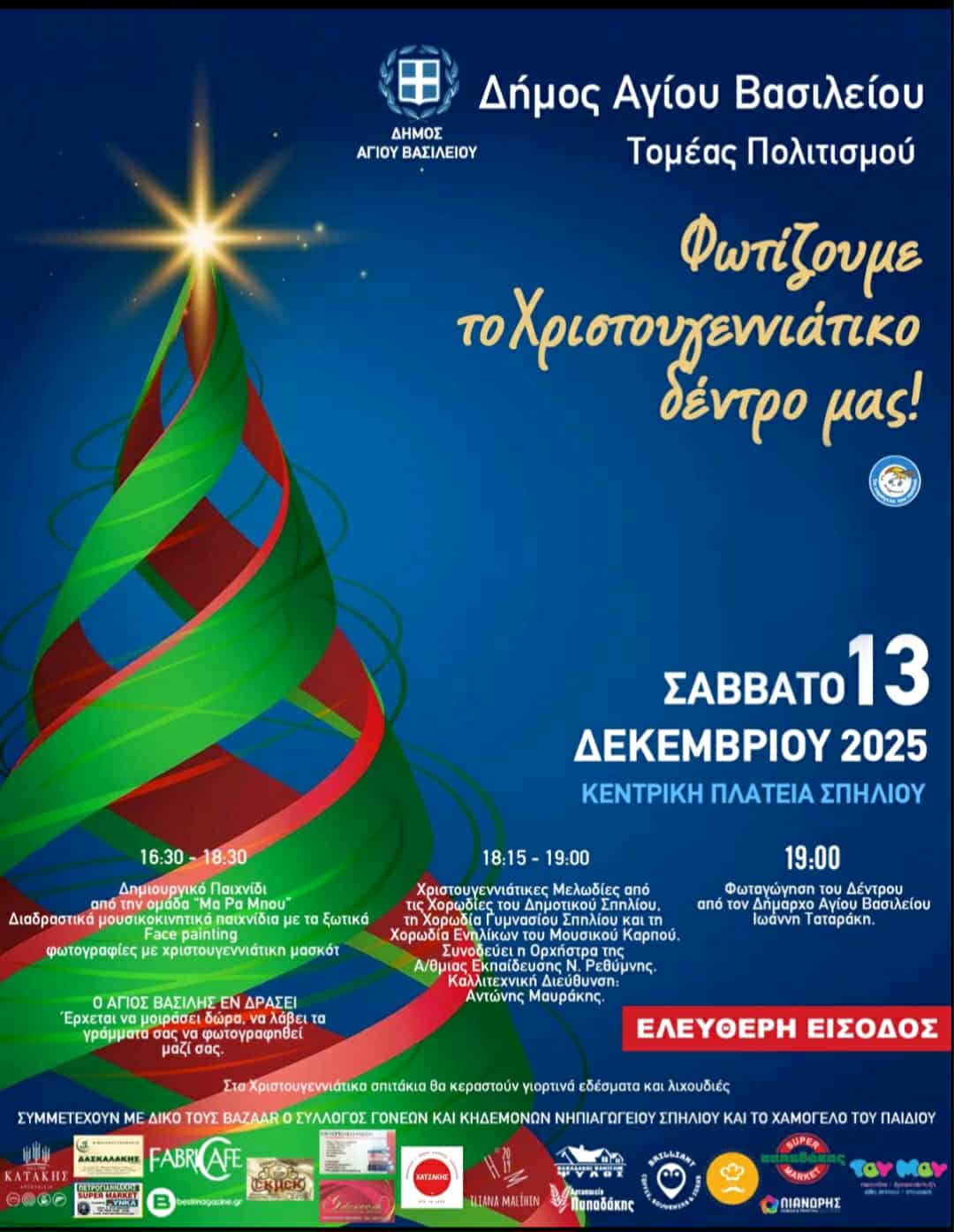 Το Σάββατο 13 Δεκεμβρίου, η κεντρική πλατεία του Σπηλίου μεταμορφώνεται σε ένα ζεστό, γιορτινό χωριό γεμάτο παιχνίδι, μουσική, εκπλήξεις και χαρούμενες φωνές.