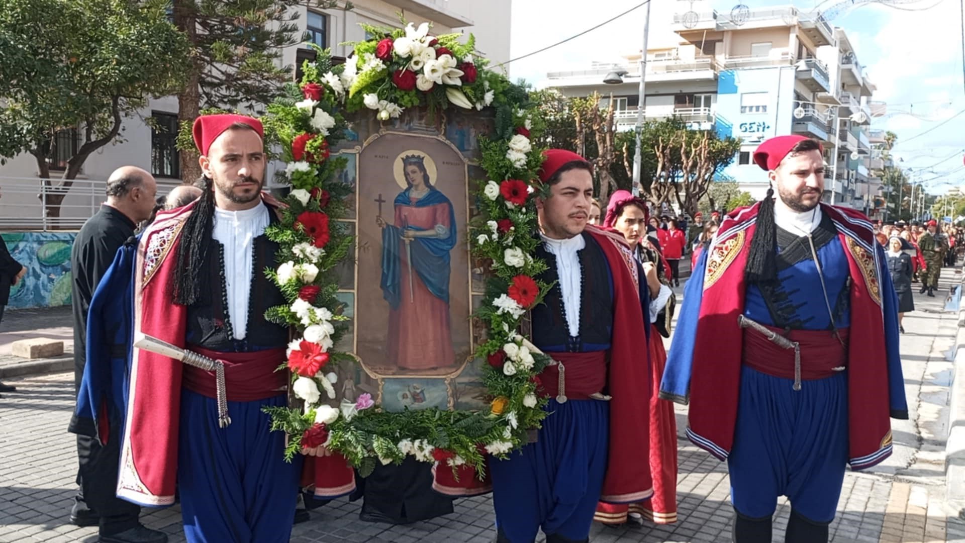 Την Εικόνα της Πολιούχου Αγίας Βαρβάρας μετέφεραν τα μέλη του Λαογραφικού Ομίλου Τζανιδάκη.