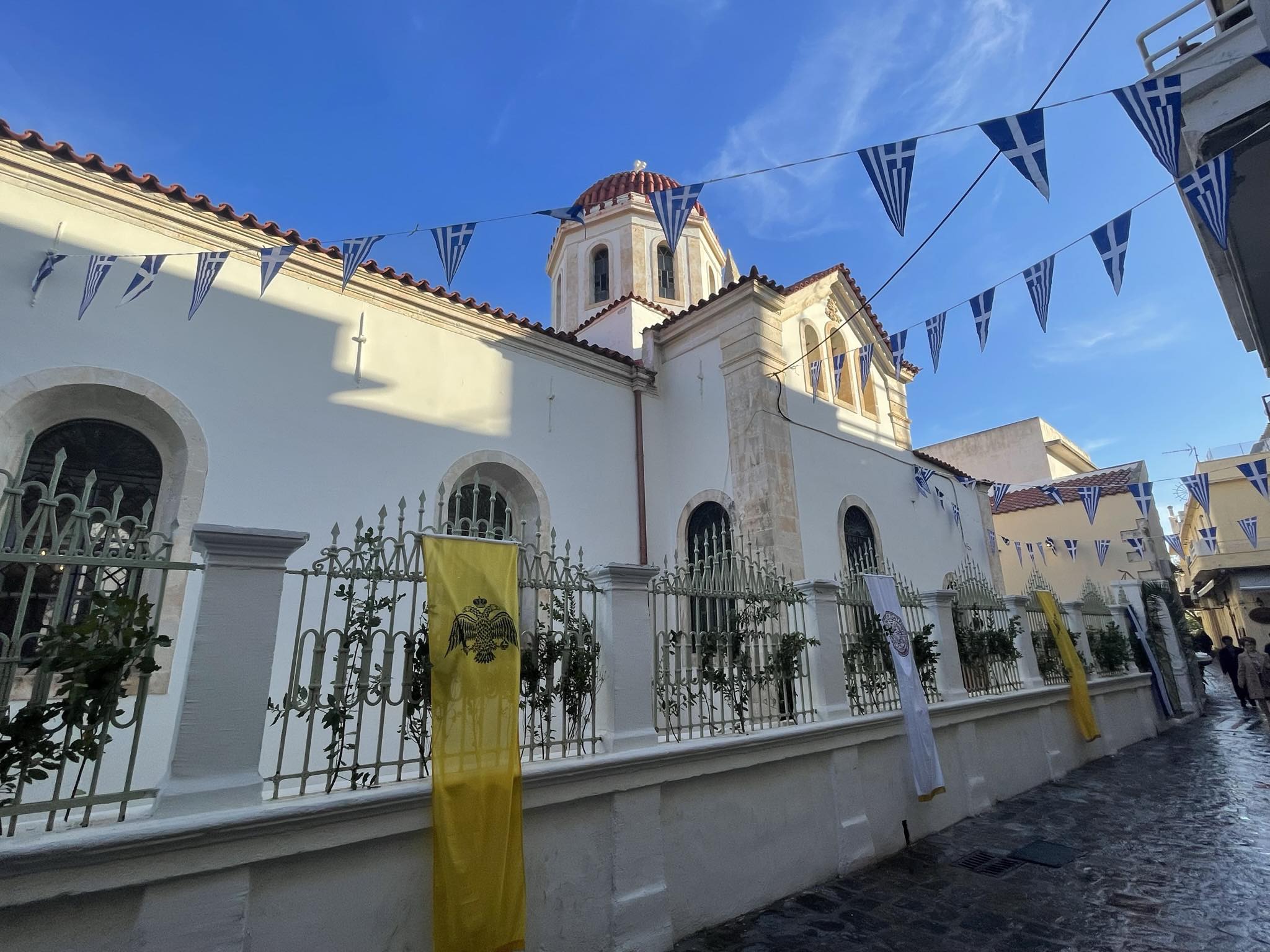 Στον ιστορικό Ιερό Ναό της παλιάς πόλης, τελέστηκε Αρχιερατικό Συλλείτουργο με την συμμετοχή του Μητροπολίτη Ρεθύμνης και Αυλοποτάμου κ. Προδρόμου, του Μητροπολιτη Λαρίσης και Τυρνάβου κ. Ιεροθέου και του Βοηθού Επισκόπου Αμφιπόλεως κ. Χριστοφόρου της Εκκλησίας της Ελλάδος καθώς και κληρικών από την τοπική εκκλησία της Κρήτης.