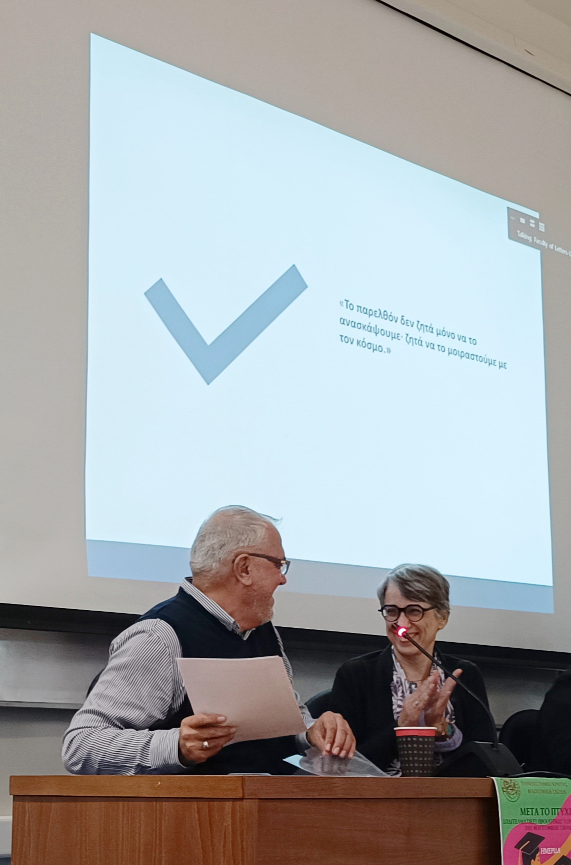 Με επιτυχία και αξιόλογη συμμετοχή, διά ζώσης και διαδικτυακά, πραγματοποιήθηκε την Τρίτη 2 Δεκεμβρίου η ημερίδα που διοργάνωσε η Κοσμητεία της Φιλοσοφικής Σχολής του Πανεπιστημίου Κρήτης, με θέμα τις επαγγελματικές προοπτικές των αποφοίτων της. Η εκδήλωση, που φιλοξένησε δεκατέσσερις ομιλητές, αποτέλεσε μια ουσιαστική γέφυρα επικοινωνίας μεταξύ της ακαδημαϊκής κοινότητας και του επαγγελματικού κόσμου, αναδεικνύοντας τις πολλαπλές και συχνά απρόσμενες διαδρομές που μπορούν να ακολουθήσουν οι απόφοιτοι των ανθρωπιστικών σπουδών.