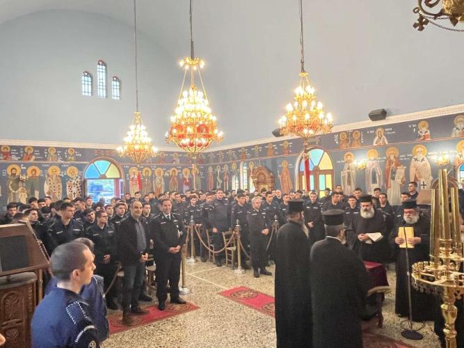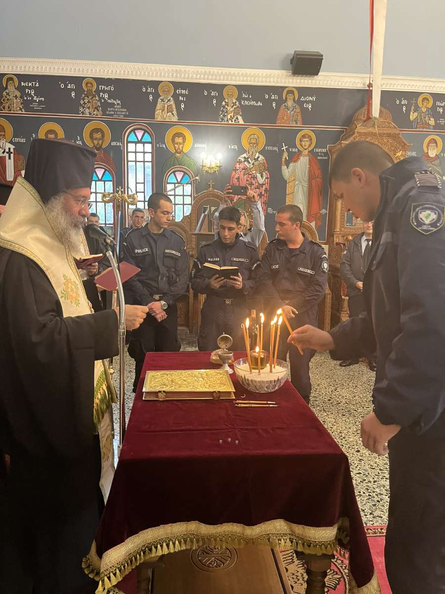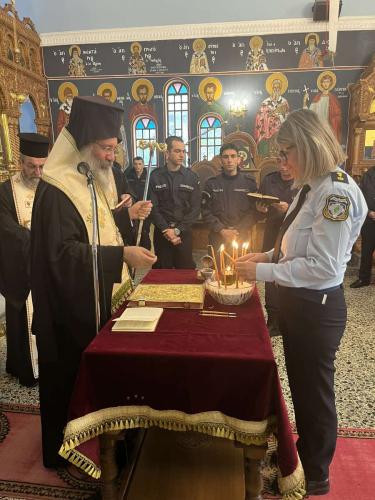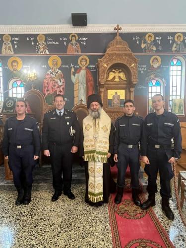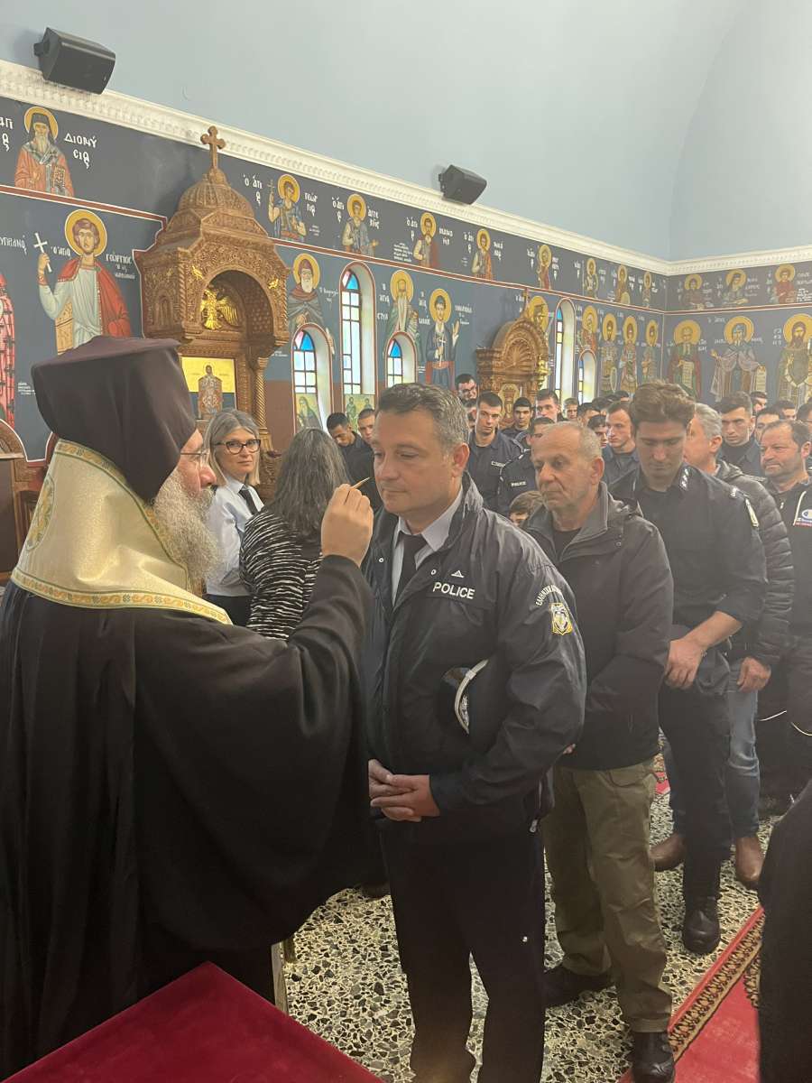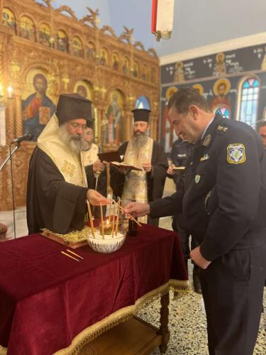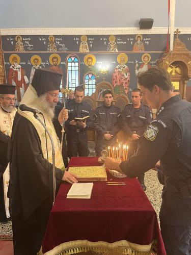 Ο Σεβασμιώτατος, χρίοντας με το Άγιο Έλαιο του Ιερού Ευχελαίου όλους τους συνευχομένους, τους ευχήθηκε υγεία ψυχής και σώματος, ώστε να διέλθομε με ειρήνη και πνευματική ευφροσύνη τις επερχόμενες Εορτές του Αγίου Δωδεκαημέρου, και ιδιαιτέρως προς τους δοκίμους του Τμήματος να έχουν καλή πρόοδο για να υπηρετήσουν την ένδοξη Ελληνική Αστυνομία με πιστότητα και αφοσίωση, κατά το παράδειγμα του Διοικητού και των εκπαιδευτών τους.