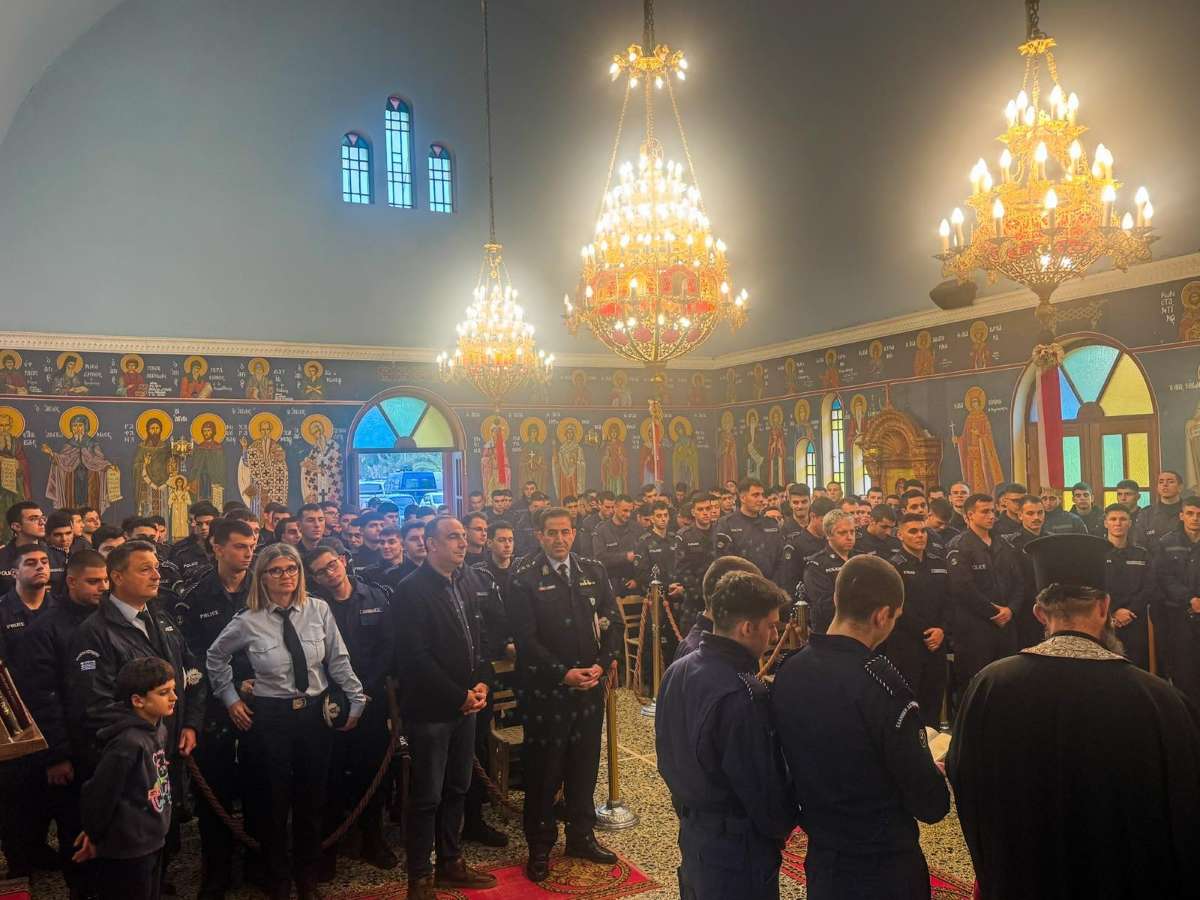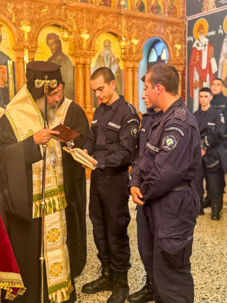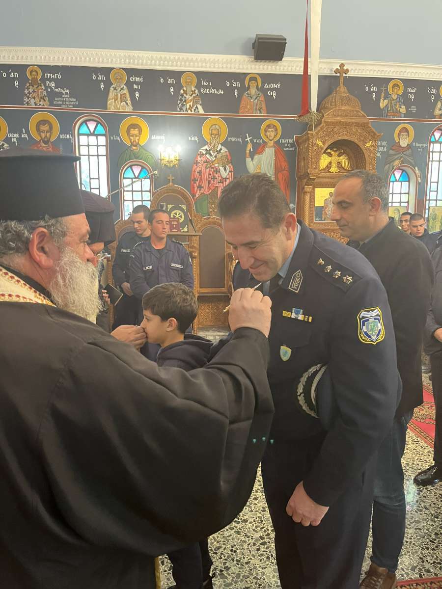Ο Σεβασμιώτατος, χρίοντας με το Άγιο Έλαιο του Ιερού Ευχελαίου όλους τους συνευχομένους, τους ευχήθηκε υγεία ψυχής και σώματος, ώστε να διέλθομε με ειρήνη και πνευματική ευφροσύνη τις επερχόμενες Εορτές του Αγίου Δωδεκαημέρου, και ιδιαιτέρως προς τους δοκίμους του Τμήματος να έχουν καλή πρόοδο για να υπηρετήσουν την ένδοξη Ελληνική Αστυνομία με πιστότητα και αφοσίωση, κατά το παράδειγμα του Διοικητού και των εκπαιδευτών τους.