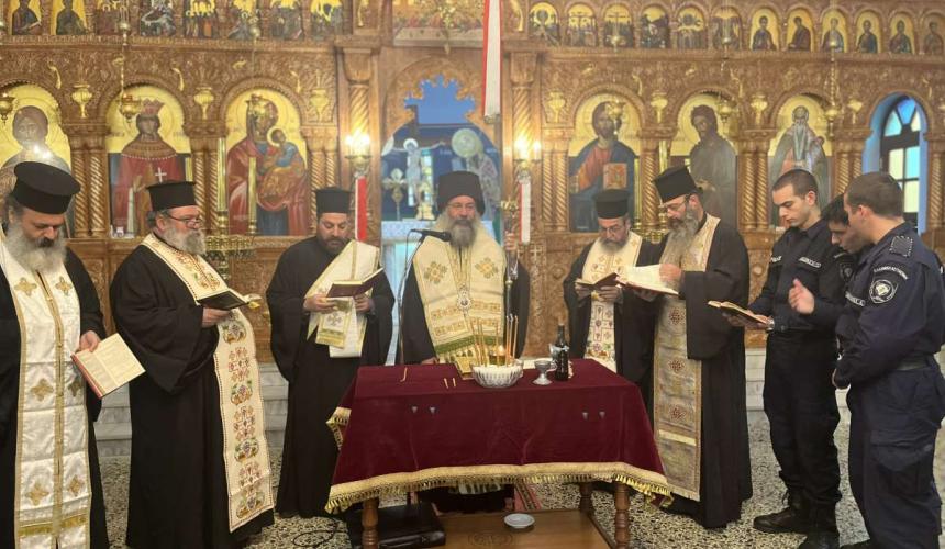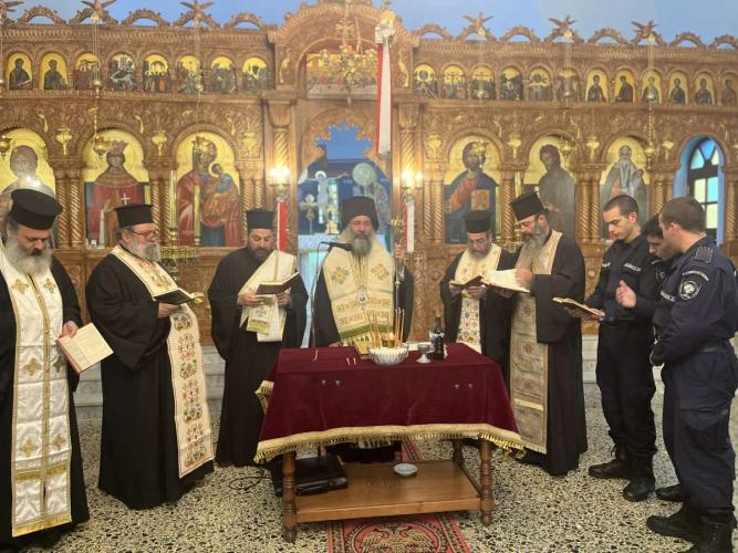 Το μεσημέρι της Παρασκευής, 5ης Δεκεμβρίου 2025, ο Σεβασμιώτατος Μητροπολίτης Ρεθύμνης και Αυλοποτάμου κ. Πρόδρομος, κατόπιν προσκλήσεως του Διοικητού του Τμήματος Δοκίμων Αστυφυλάκων Ρεθύμνου κ. Σπυρίδωνα Γερμανάκη, μετέβη στον εντός του Τμήματος Ιερό Ναό της Αγίας Μεγαλομάρτυρος Ειρήνης, όπου, συμπαραστατούμενος υπό κληρικών της Ιεράς Μητροπόλεως, τέλεσε το Ιερό Ευχέλαιο υπέρ υγείας και ενισχύσεως των μελών του Τμήματος.