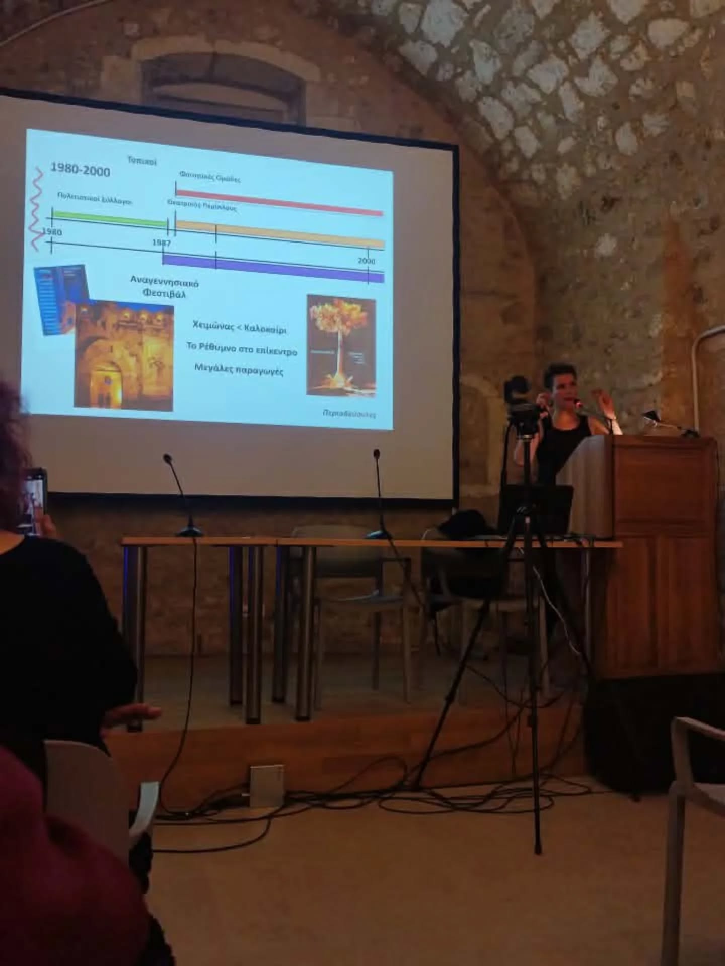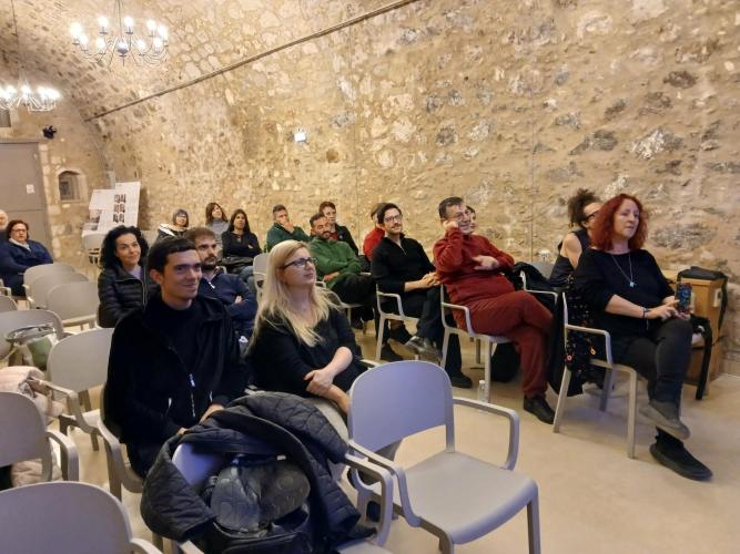 Με μεγάλη επιτυχία πραγματοποιήθηκε χθες, στο Ινστιτούτο Μεσογειακών Σπουδών, η ομιλία της διδάκτορος Θεατρολογίας Άννας Τζανιδάκη, αφιερωμένη στη θεατρική ιστορία του Ρεθύμνου. Η ομιλήτρια παρουσίασε τους σημαντικότερους σταθμούς της θεατρικής δραστηριότητας της πόλης, φωτίζοντας τους χώρους, τις ομάδες επαγγελματικές και ερασιτεχνικές, αλλά και τις προσωπικότητες που διαμόρφωσαν τη θεατρική της ταυτότητα κατά τον 20ό αιώνα.