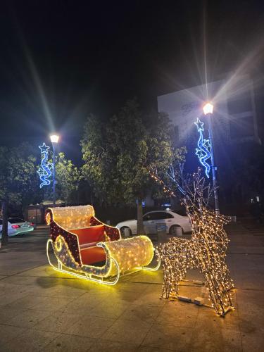 Στην κεντρική πλατεία δεσπόζουν τρία βασικά στοιχεία: το μπλε χριστουγεννιάτικο δέντρο, το έλκηθρο του Άγιου Βασίλη με τους ταράνδους και το φωτεινό αερόστατο, τα οποία προσελκύουν καθημερινά μικρούς και μεγάλους για αναμνηστικές φωτογραφίες.