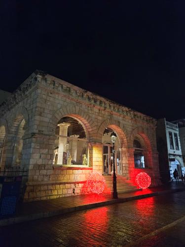 Προχωρώντας στην οδό Αρκαδίου, οι φωτεινοί εναέριοι στολισμοί δημιουργούν μια συνεχή γιορτινή διαδρομή. Στο τέλος του δρόμου, ο εξωτερικός στολισμός της Εφορείας Αρχαιοτήτων Ρεθύμνου αποτελεί επίσης δημοφιλές σημείο για φωτογραφίες, χάρη στην ιδιαίτερη φωταγώγηση του κτιρίου.