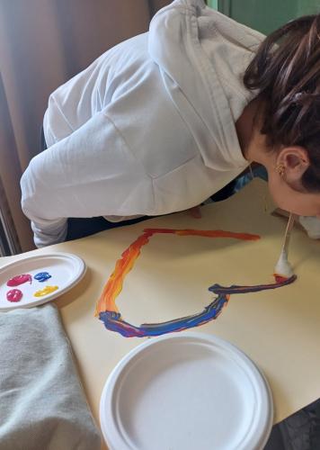 Οι μαθητές δημιούργησαν αφίσες ζωγραφίζοντας με το στόμα, μία δραστηριότητα που τους έδωσε την ευκαιρία να εκτιμήσουν την επιμονή και τη δημιουργικότητα καλλιτεχνών που χρησιμοποιούν τον συγκεκριμένο τρόπο έκφρασης.