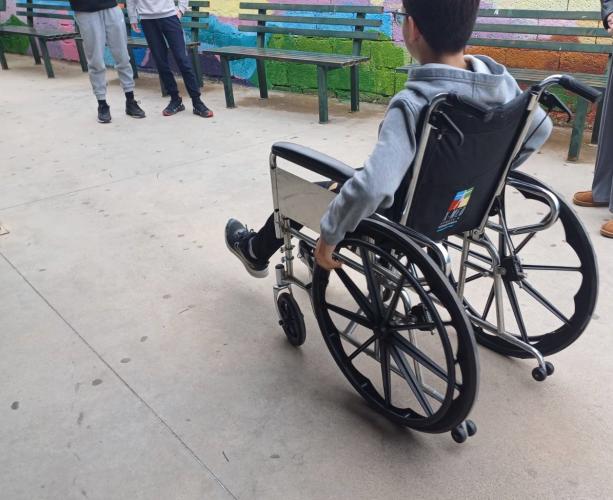 Τέλος, οι μαθητές περιηγήθηκαν στους χώρους του σχολείου με αναπηρικό αμαξίδιο, εντοπίζοντας τα σημεία που χρήζουν βελτίωσης, συνειδητοποιώντας στην πράξη πόσο σημαντική είναι η προσβασιμότητα για όλους.