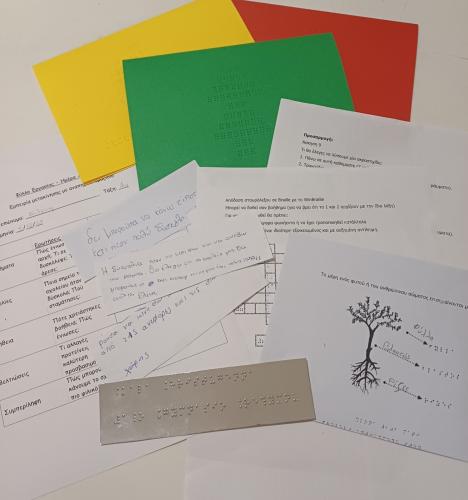 Με το πέρας των δραστηριοτήτων, οι μαθητές συμπλήρωσαν φύλλα εργασίας, καταγράφοντας τα συναισθήματά τους, τις δυσκολίες που αντιμετώπισαν και τις εντυπώσεις τους. Επίσης, έλυσαν ακροστιχίδα σε απτικό σύστημα γραφής και ανάγνωσης Braille, ενισχύοντας την κατανόηση του κώδικα και βιώνοντας τη διαδικασία μάθησης των ατόμων με οπτική αναπηρία.