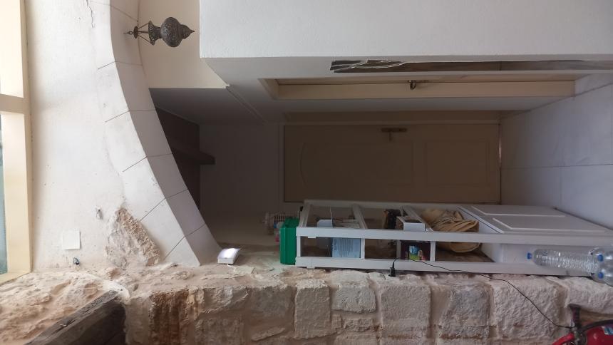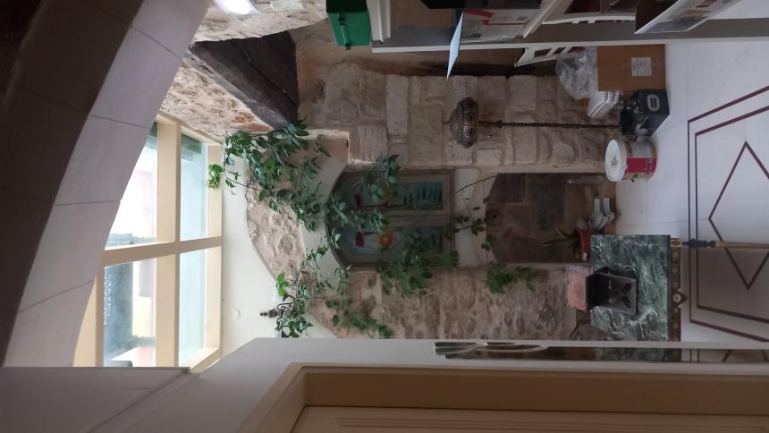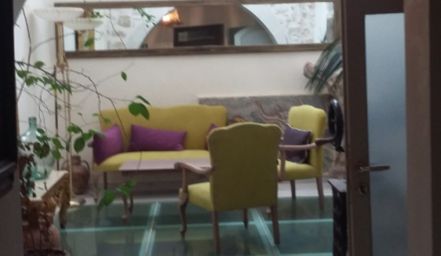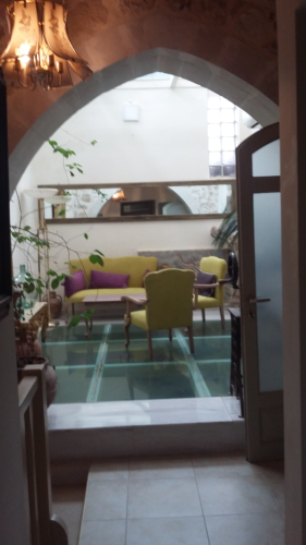 Το Συμβούλιο Μνημείων Κρήτης, είχε εγκρίνει να κατασκευάσουμε γυάλινο δώμα στο β όροφο και γυάλινο πάτωμα στον α όροφο, για να κατεβαίνει το φως στο ισόγειο και να φωτίζεται η μεγάλη σάλα του χαμάμ. Ενώ η πρόταση είχε εγκριθεί, ενώ τα συνεργεία δούλευαν νόμιμα, το παραπάνω έγγραφο της τοπικής Αρχαιολογίας, αναιρεί εν μέρη την απόφαση. Μας ζητά να κατασκευάσουμε γυάλινο ΜΟΝΟ το δώμα του β ορόφου (την ταράτσα), αλλά όχι το μεσοπάτωμα. Αναγκαστικά σταματήσαμε τις εργασίες στο μεσοπάτωμα. Παραμένοντας κενό, υπήρξε κίνδυνος να πέσει κανείς, γι αυτό μας έδωσαν άδεια να κατασκευάσουμε κάγκελο κάτω απ το (αυθαίρετα κατασκευασμένο) τοξωτό άνοιγμα.