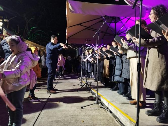 Μαγεία και Ενθουσιασμός: Οι χορωδοί, με τη ζεστή και αρμονική φωνή τους, κατάφεραν να ζωντανέψουν τη μαγεία των Χριστουγέννων στα μάτια των παιδιών. Τα χαμόγελα και ο ενθουσιασμός τους, επιβεβαίωσαν ότι η μουσική είναι το καλύτερο όχημα για τη μετάδοση της εορταστικής διάθεσης. Η πλατεία μετατράπηκε σε μια μεγάλη γιορτινή παρέα, όπου η αθωότητα και η χαρά των παιδιών κυριαρχούσαν, ενισχύοντας το αληθινό πνεύμα των Χριστουγέννων, οι οποίοι παρακολουθούσαν με ενθουσιασμό, ενώ η προσμονή κορυφωνόταν ενόψει της μεγάλης στιγμής.