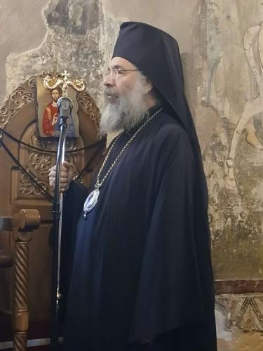Προ της απολύσεως της Θείας Λειτουργίας, ο Σεβασμιώτατος αναφέρθηκε με λόγους τιμής και σεβασμού στο μακαριστό π. Ιωάννη, σημειώνοντας, χαρακτηριστικά, ότι κάποιοι άνθρωποι έχουν το προνόμιο να ταυτίζονται απολύτως με έναν τόπο και αυτό ακριβώς συνέβη με τον π. Ιωάννη και τα Μυριοκέφαλα, και ευχήθηκε πάντοτε στην Εκκλησία μας να αναδεικνύονται κληρικοί αυτού του ενθέου ζήλου και του πνευματικού διαμετρήματος του μακαριστού Πρωθιερέως, ευχόμενος καταλλήλως προς την οικογένειά του και προς τους πολυπληθείς προσκυνητές, μεταξύ των οποίων ο Δήμαρχος Ρεθύμνης κ. Γεώργιος Μαρινάκης, ο Αντιδήμαρχος Ρεθύμνης κ. Δημήτριος Λελεδάκης και ο Πρόεδρος του Δημοτικού Συμβουλίου Ρεθύμνου κ. Νικόλαος Αγριμάκης, οι οποίοι παρέστησαν και συμπροσευχήθηκαν για τον μακαριστό π. Ιωάννη.