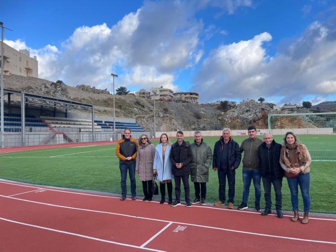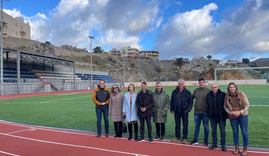 Στο πλαίσιο της επίσκεψης πραγματοποιήθηκε αυτοψία στο πλήρως ανακαινισμένο δημοτικό στάδιο Ανωγείων, καθώς και στους ξενώνες φιλοξενίας. Η κ. Σακοράφα συνεχάρη τον Δήμαρχο για την ποιότητα και τη λειτουργικότητα των αθλητικών εγκαταστάσεων, υπογραμμίζοντας ότι το στάδιο μπορεί να αποτελέσει βασικό πυλώνα για την ανάπτυξη του κλασικού αθλητισμού και της αθλητικής νεολαίας, αλλά και σημαντικό σημείο αναφοράς για τη διοργάνωση αθλητικών γεγονότων σε τοπικό και υπερτοπικό επίπεδο.