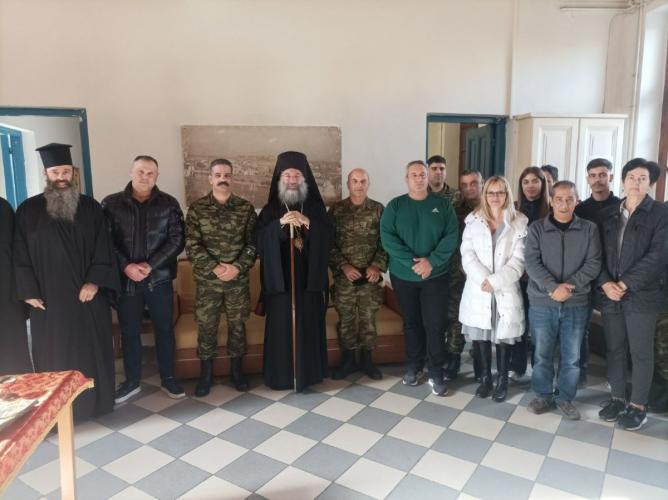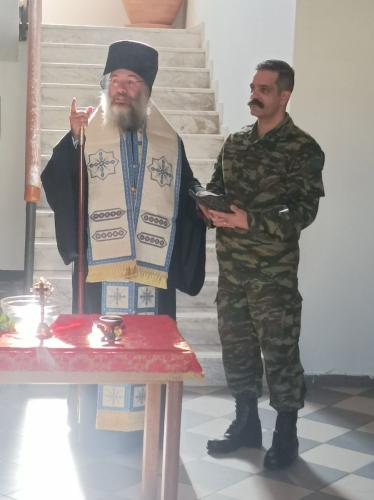 Ο Σεβασμιώτατος, προ της απολύσεως, ευχήθηκε καταλλήλως στον εκλεκτό Διοικητή του Τάγματος και σε όλους τους επιτελείς του, να έχουν πλούσια τη χάρη και ευλογία του Θεού στο σπουδαίο έργο τους.