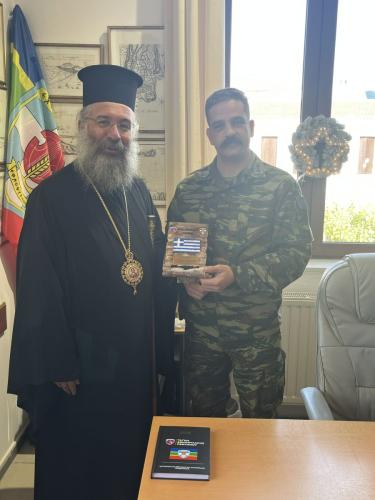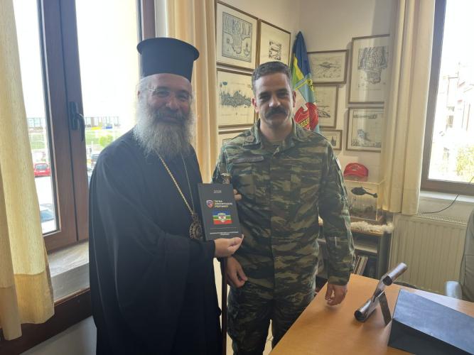 Επίσης, ο Σεβασμιώτατος παρέλαβε με χαρά από τον κ. Διοικητή αναμνηστική ατζέντα για το έτος 2026 και σχετική τιμητική πλακέτα, ευχαριστώντας τον κ. Αλεξανδρή για την τιμή.