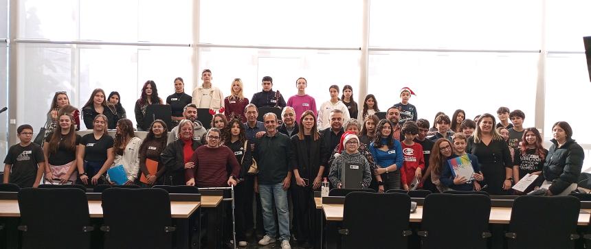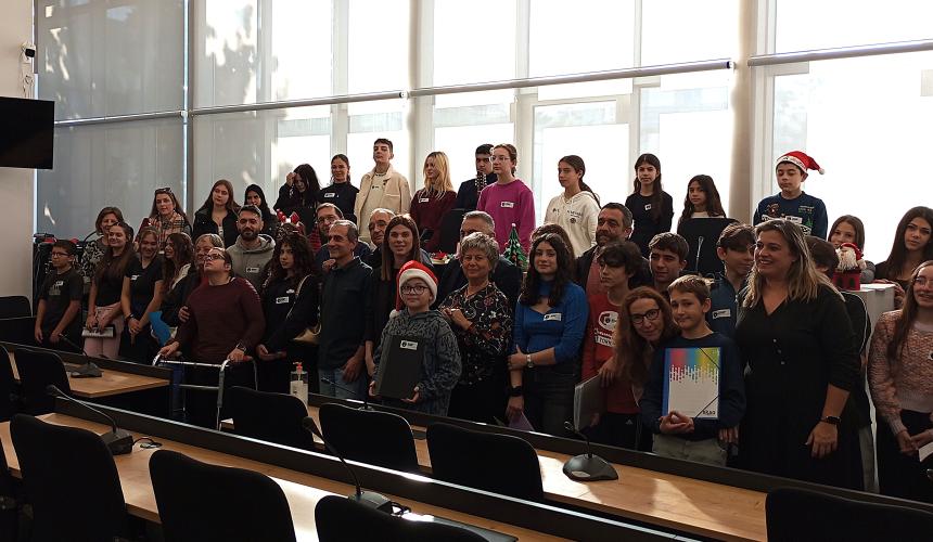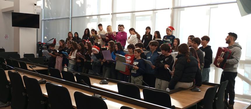 Γιορτινή ατμόσφαιρα πλημμύρισε σήμερα το πρωί το Δημαρχείο Ρεθύμνου, με τις χριστουγεννιάτικες μελωδίες των μαθητών του Πειραματικού Γυμνασίου του Πανεπιστημίου Κρήτης και του 4ου Νηπιαγωγείου της πόλης.