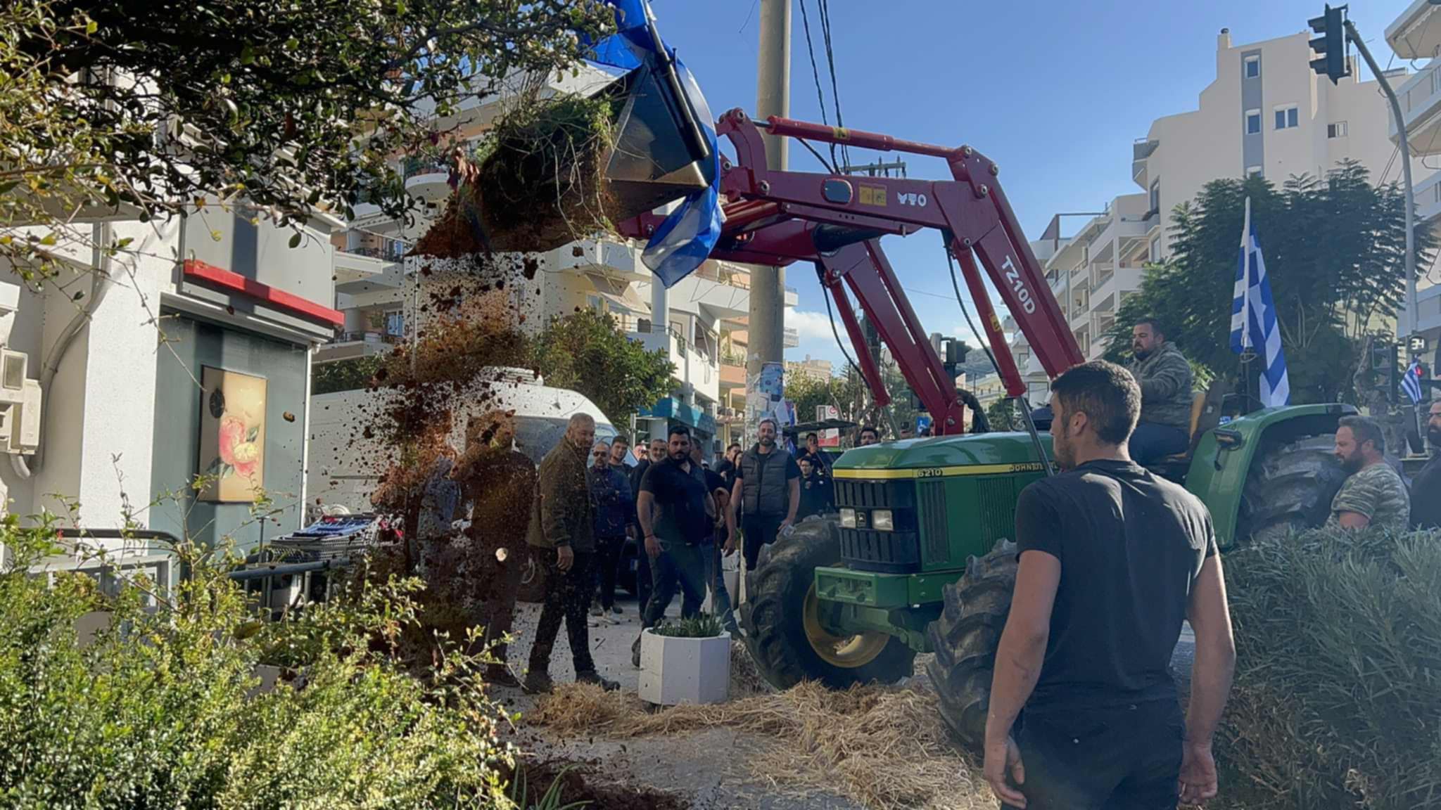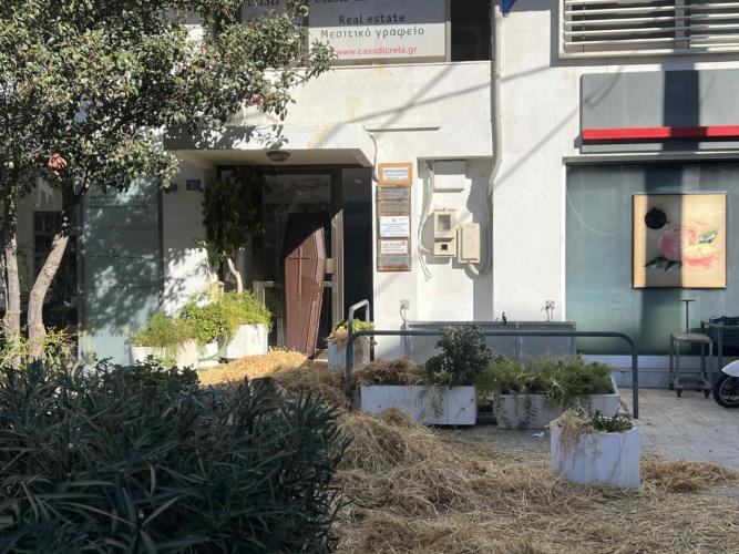 Συγκεκριμένα έριξαν χώμα και άχυρα την είσοδο της πολυκατοικίας που οδηγεί στο γραφείο του Γιάννη Κεφαλογιάννη ενώ τοποθέτησαν και ένα φέρετρο μπροστά στην πόρτα!