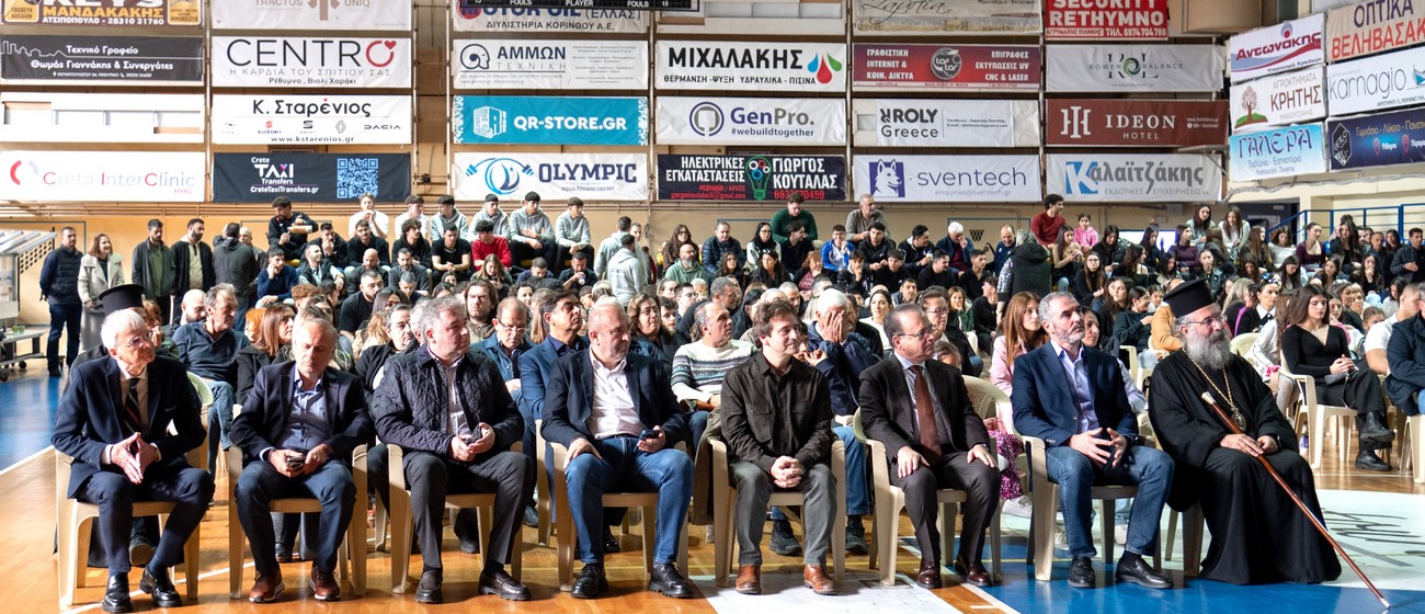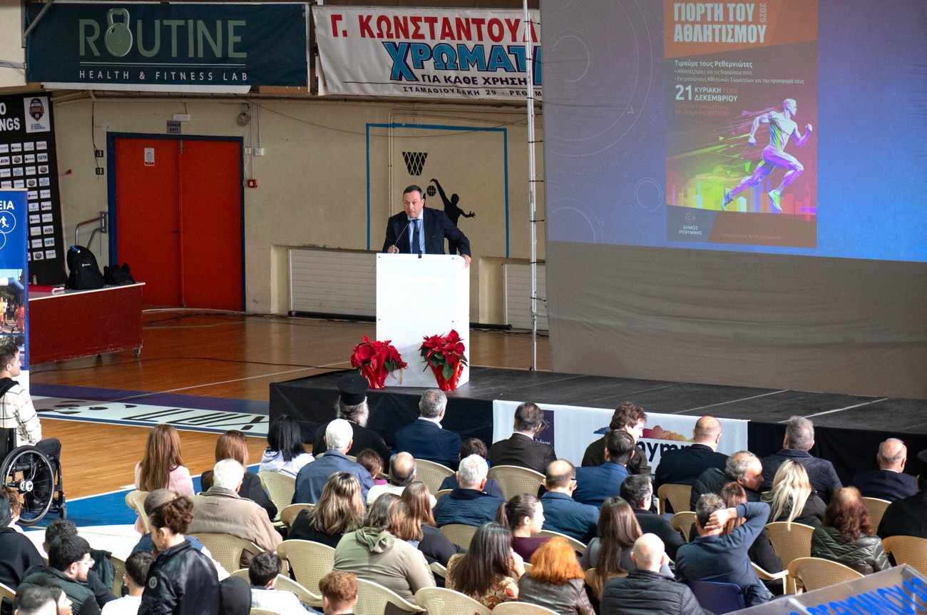 Ο Δημοσθένης Ταμπάκος έκλεψε την παράσταση στην έκτη «Γιορτή του Αθλητισμού» που διοργάνωσε ο Δήμος Ρεθύμνης την Κυριακή, 21 Δεκεμβρίου στο κλειστό γήπεδο «Μελίνα Μερκούρη», παρουσία εκπροσώπων όλων των τοπικών αρχών και φορέων, αλλά και πλήθους κόσμου.